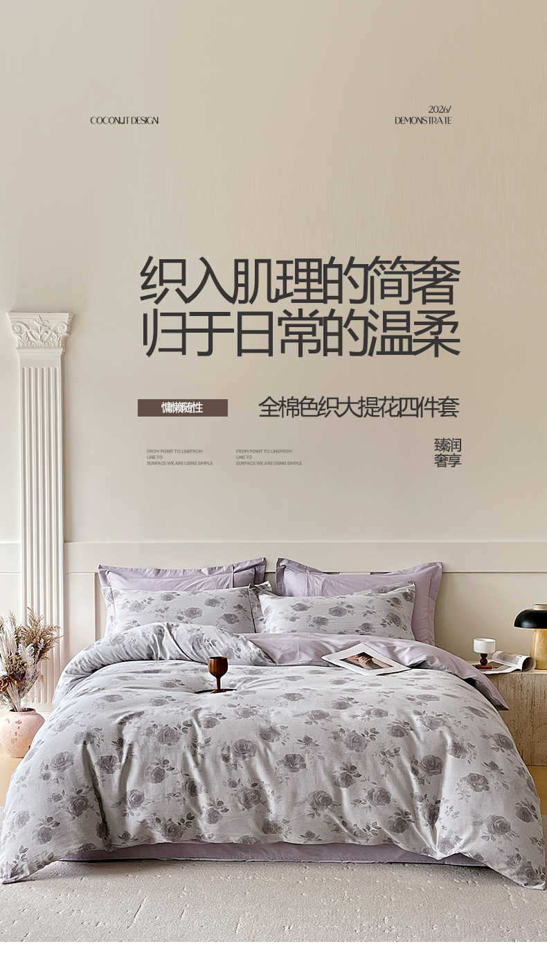(总)帅露家纺 2026新款全棉纯棉色织大提花四件套,盎春,柏拉图,沉岁,节节高枝,曼青,暮雾星辰,青禾-绿,熟秋