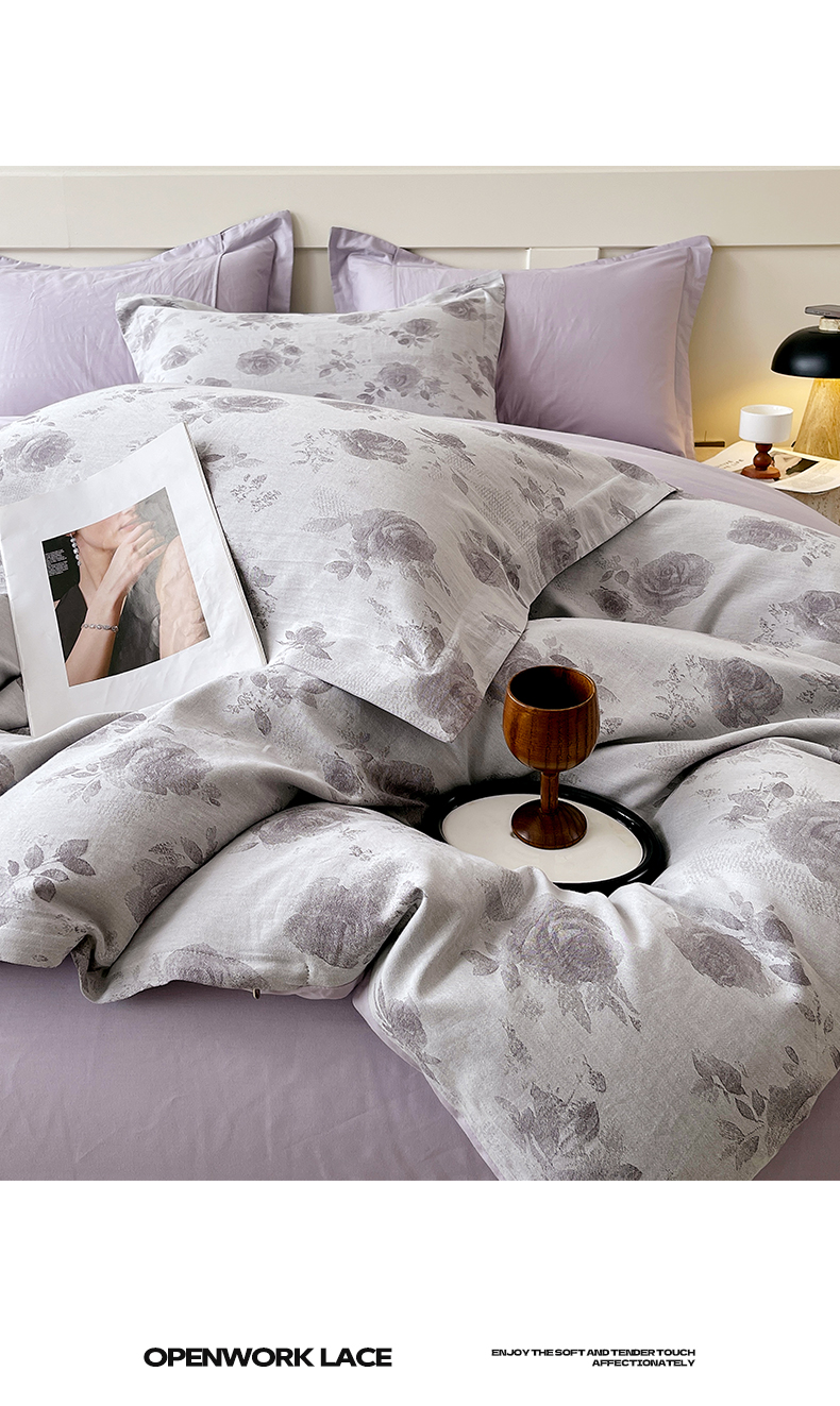 (总)帅露家纺 2025新款A类棉麻活性印染四件套系列,花间意境-红,花间意境-灰,花香满园-红,素锦-咖,香叶时代,映霜-灰,映霜-绿