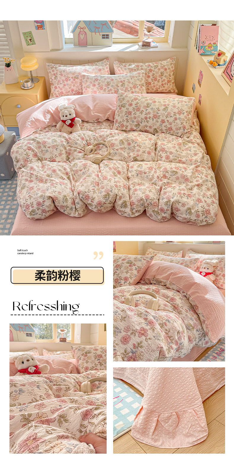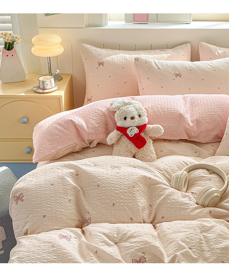 当前位置: 91家纺网 > 商品网购 > 床品套件 > 四件套 > 其它四件套 > 金梦拉家纺 2026新款A类高品质高克重超柔泡芙纱泡泡纱小清新四件套 红色雪宝