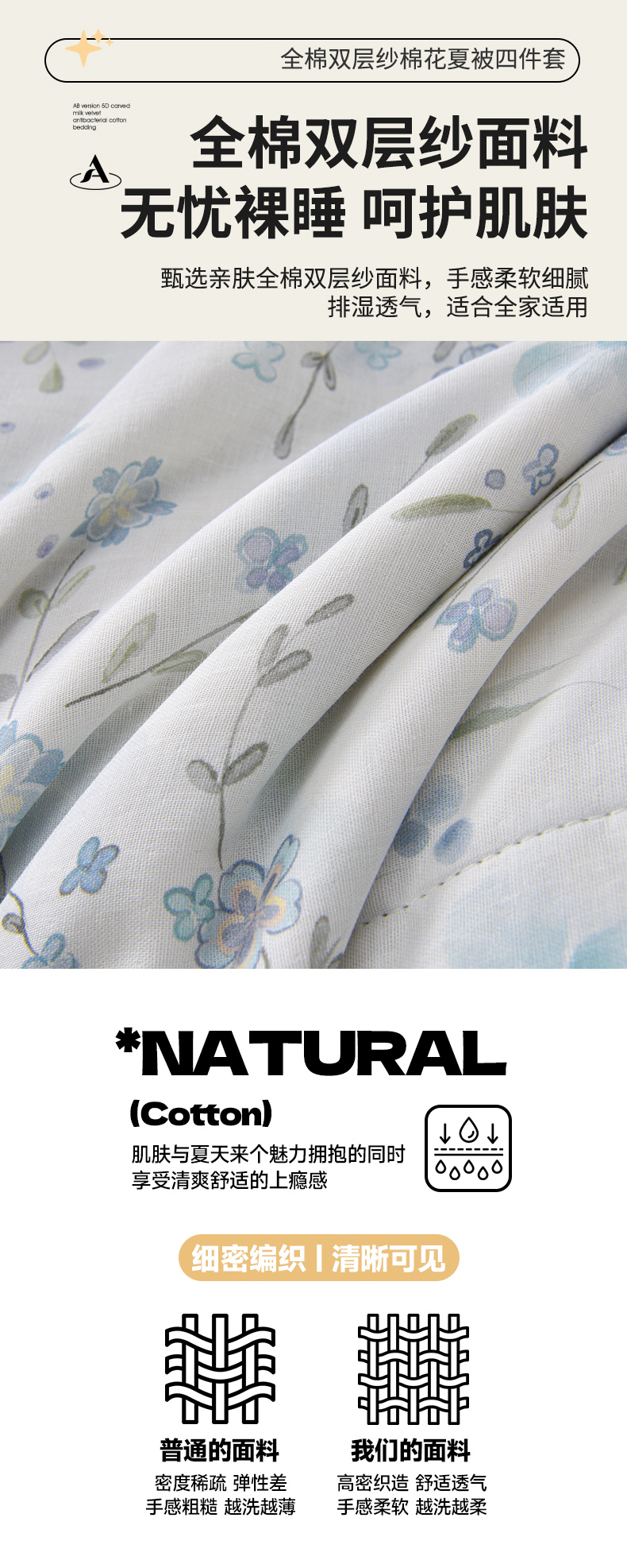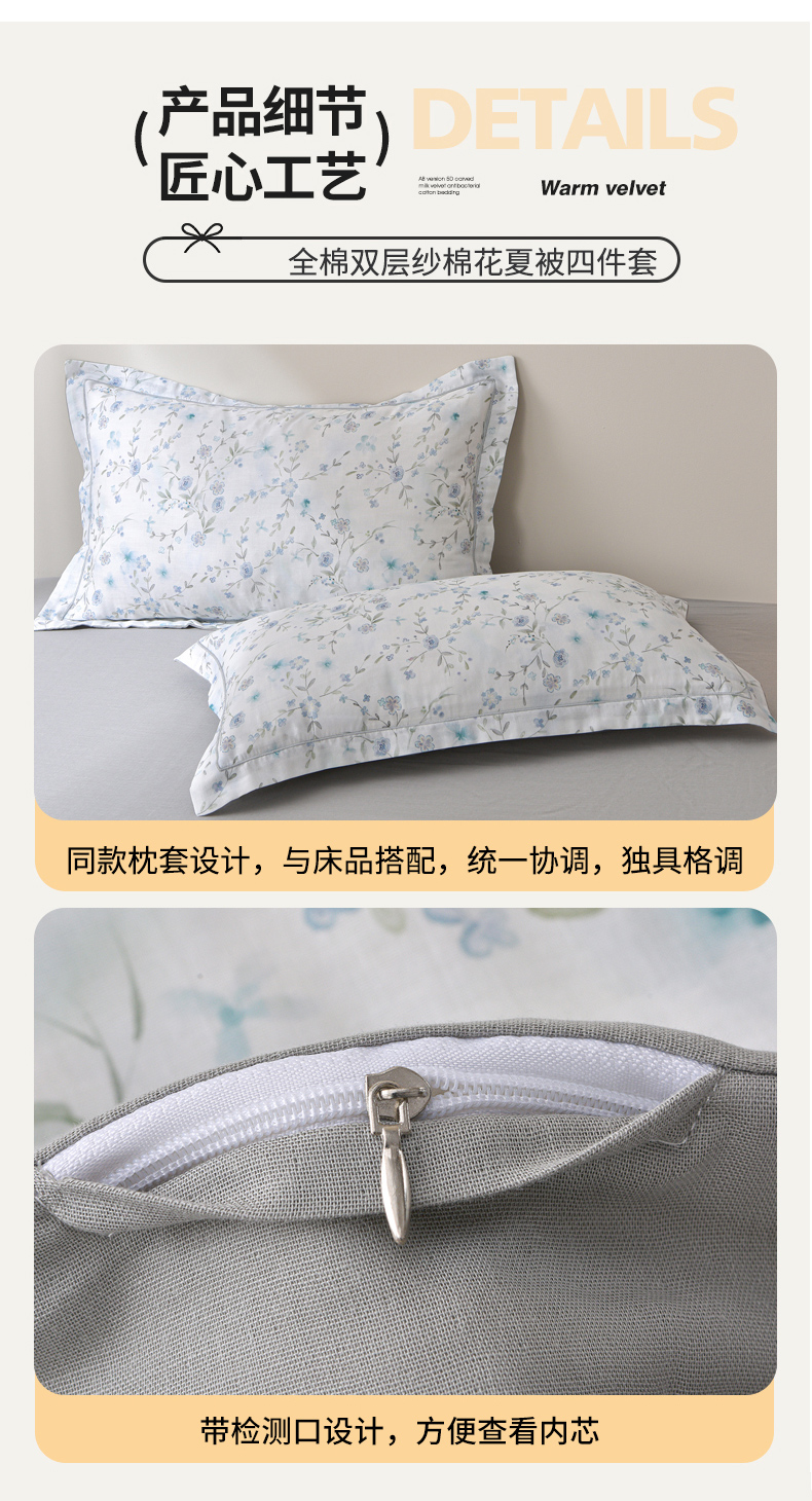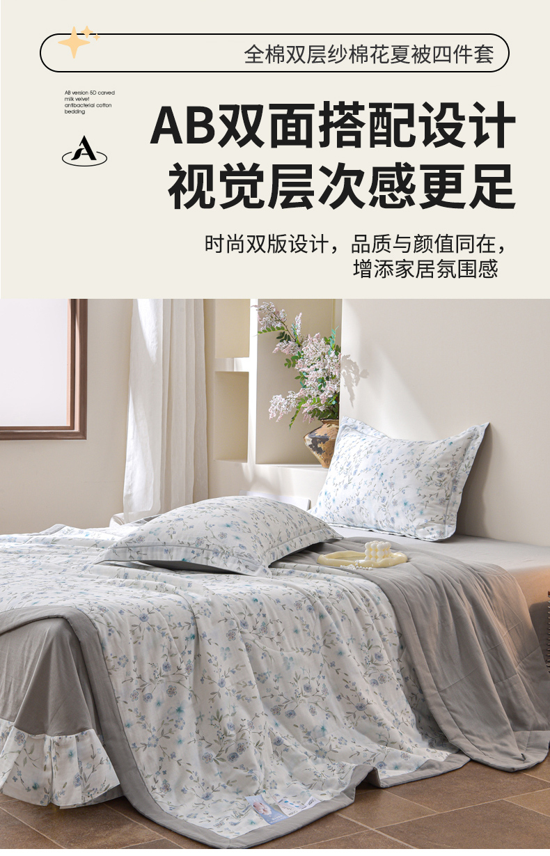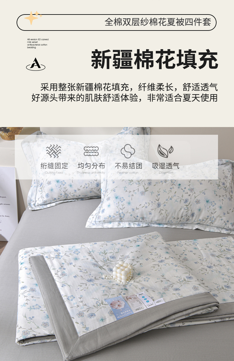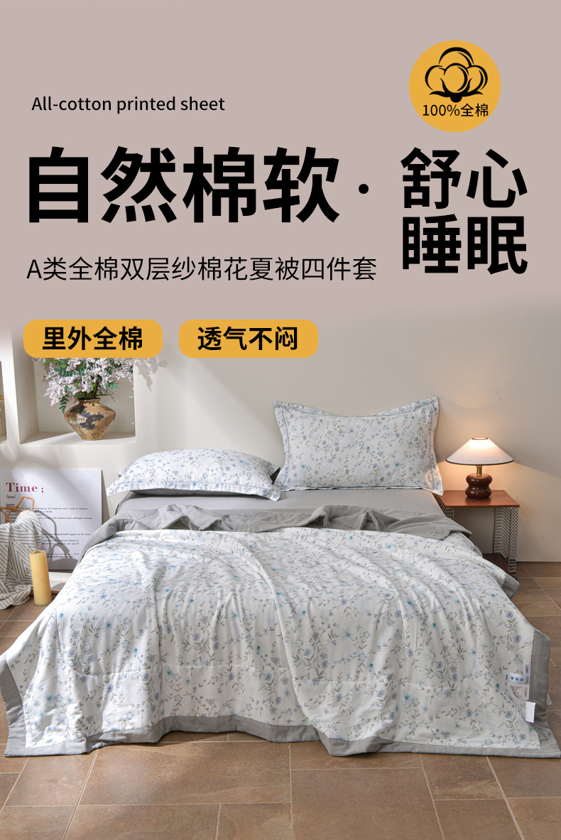 • 91家纺网 家纺一手货源 找家纺 金昱纺 2026新款A类全棉双层纱新疆棉花夏被四件套(带检测报告,包检测,有微信+买家秀) 莲礼枝-兰