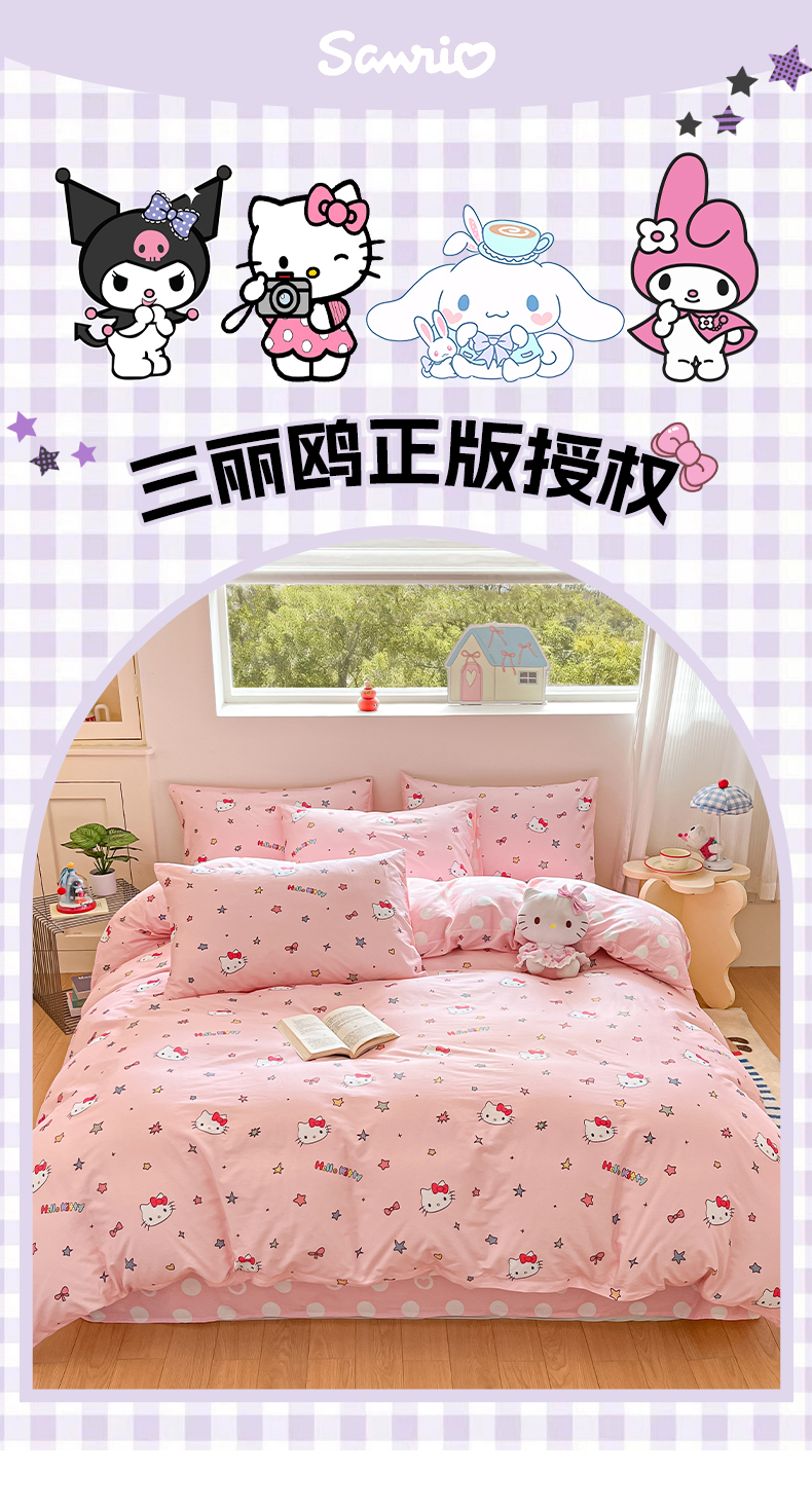 当前位置: 91家纺网 > 商品网购 > 床品套件 > 四件套 > 全棉普通四件套 > 博雅 2026新款三丽鸥全棉纯棉小版印花四件套 小版-彩色星星KT