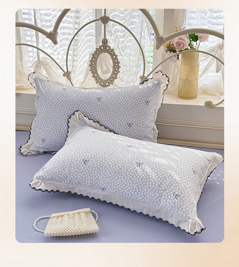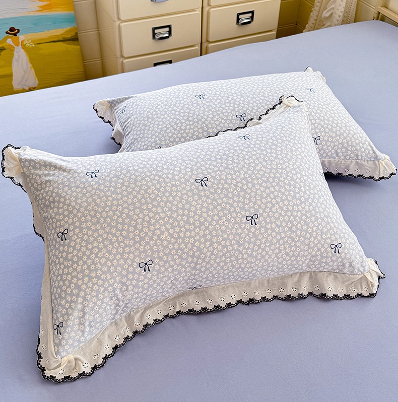 沐珩家纺 2026新款古法水洗仿棉云感棉印花单枕套 古法-蓝调星芒