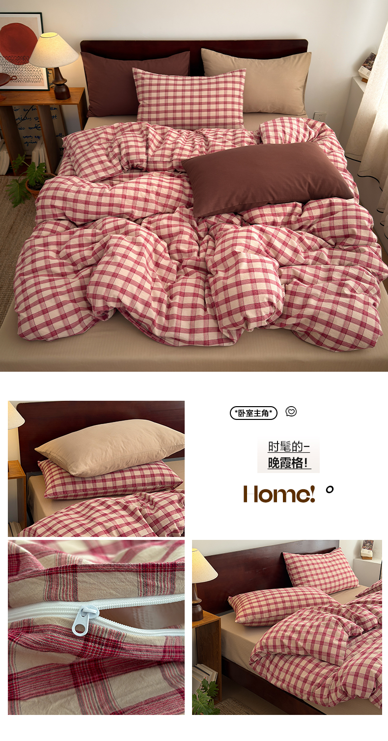 当前位置: 91家纺网 > 商品网购 > 床品套件 > 四件套 > 全棉普通四件套 > 玖弘家居 2026新款全棉色织水洗棉人字纹格子混搭四件套系列 燕麦+巧克力棕