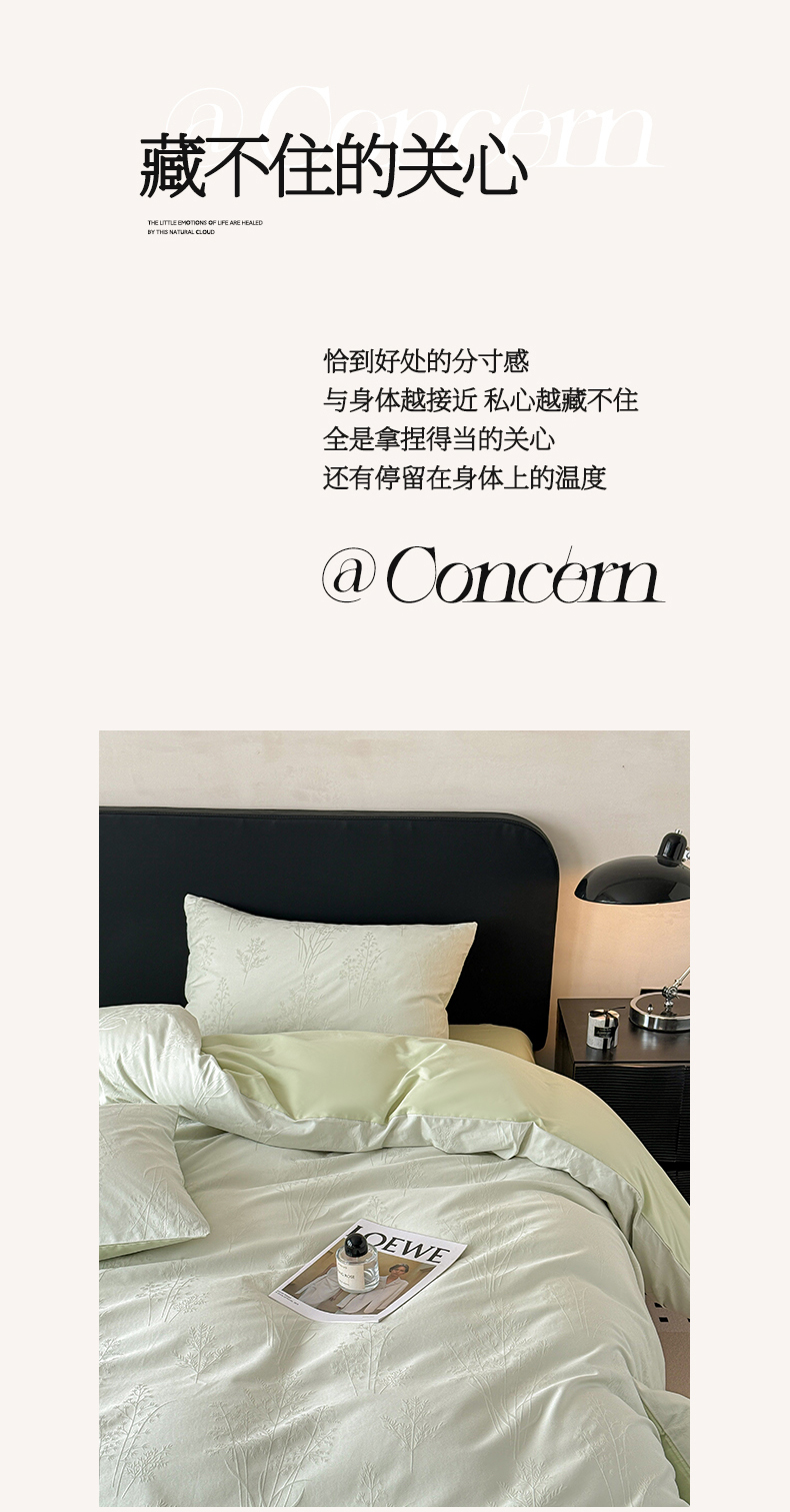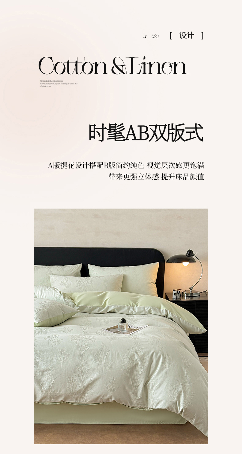 雅萱家纺 2026新款60支提花全棉四件套 春草绿