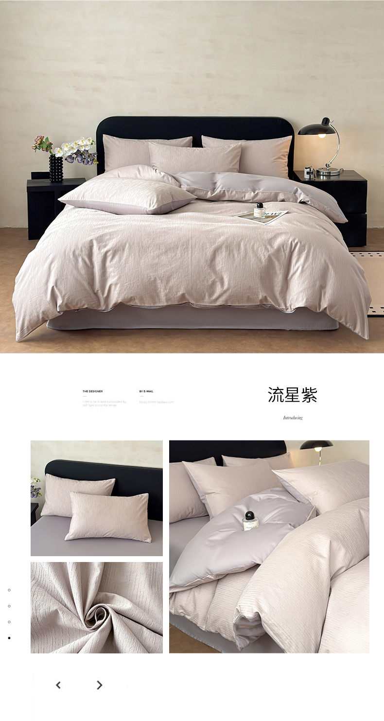 (总)雅萱家纺 2026新款60支提花全棉四件套,春草粉,春草绿,繁花绿,花影粉,肌理灰,流星米,流星紫