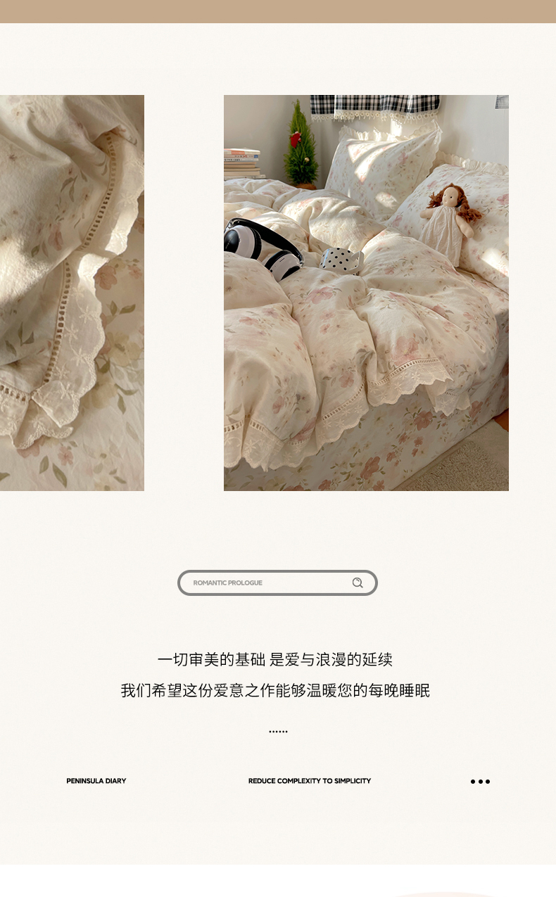 当前位置: 91家纺网 > 商品网购 > 床品套件 > 四件套 > 其它四件套 > 悦织湾家纺 2026新款镂空花边碎花款四件套印花学生宿舍床上用品三4件套单品被套枕套 暗香