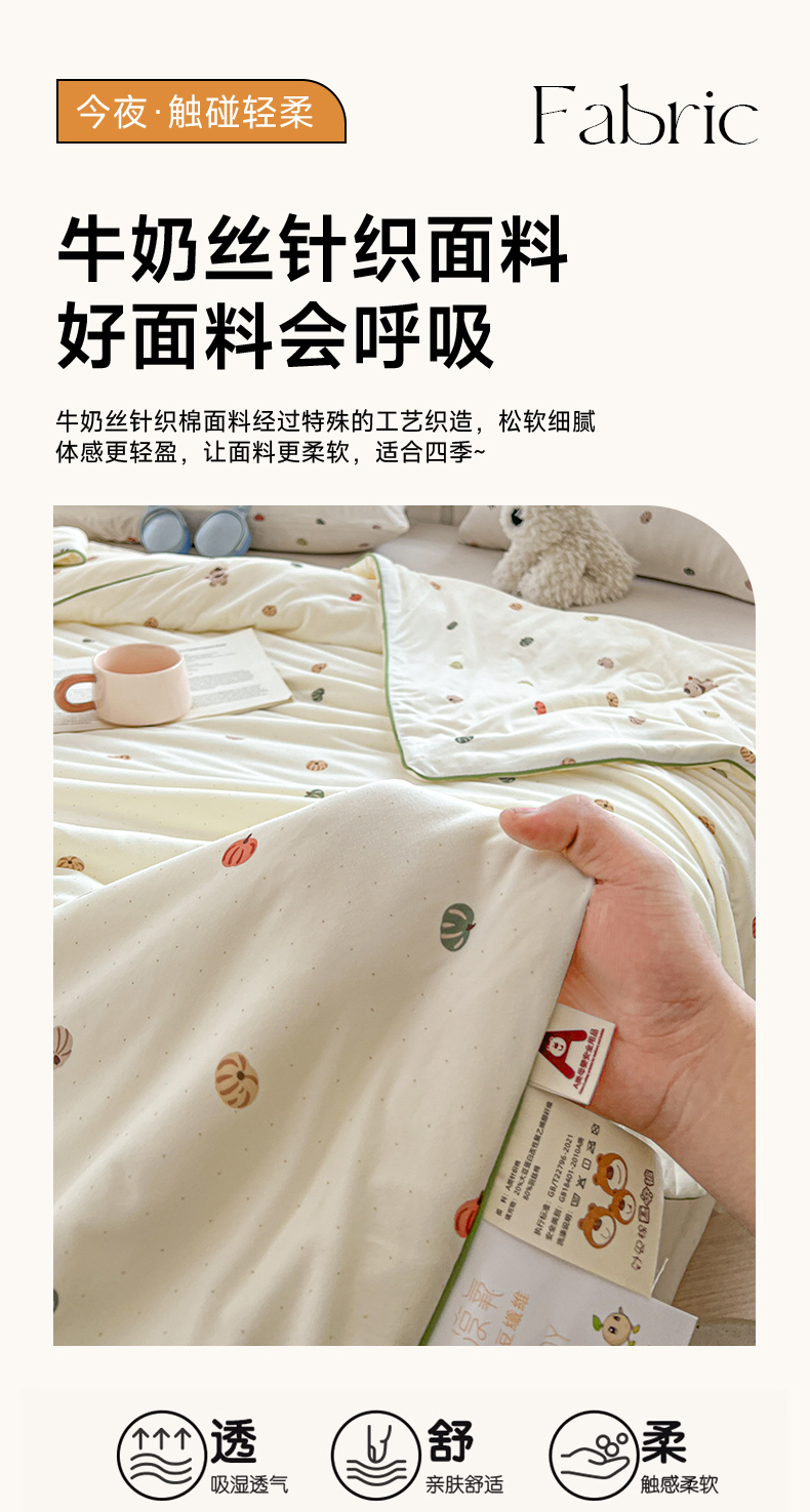 商品名称:优被业 2026新款A类牛奶丝针织棉软糯凉感大豆夏被空调被夏凉被(20%大豆国标包检测) 南瓜小熊