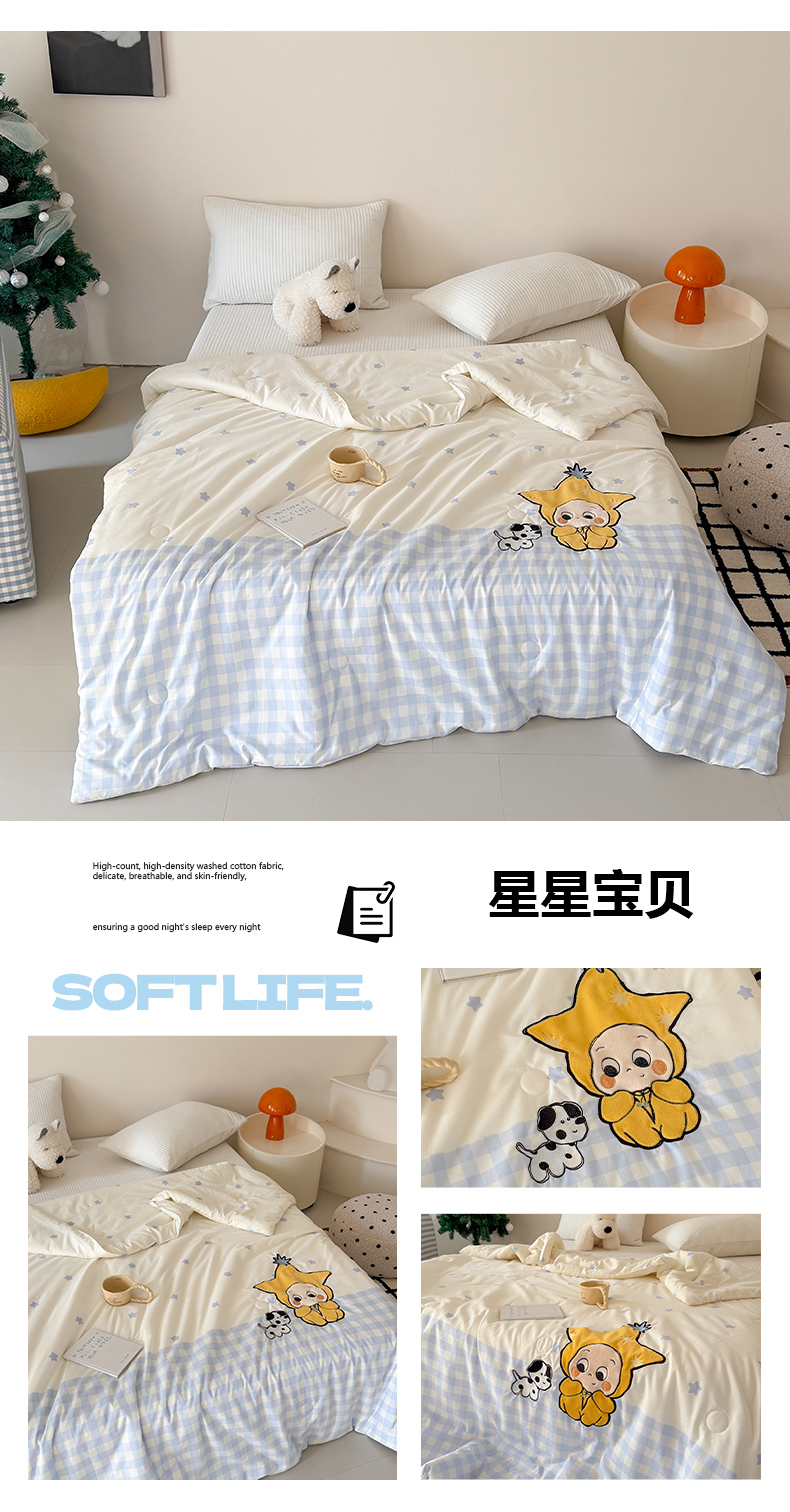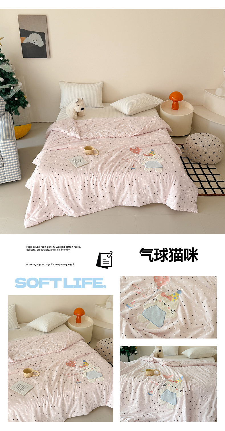 商品名称:吾欢心 2026春夏新款水洗棉可爱卡通贴布绣花单夏被空调被夏凉被 搞怪猫咪