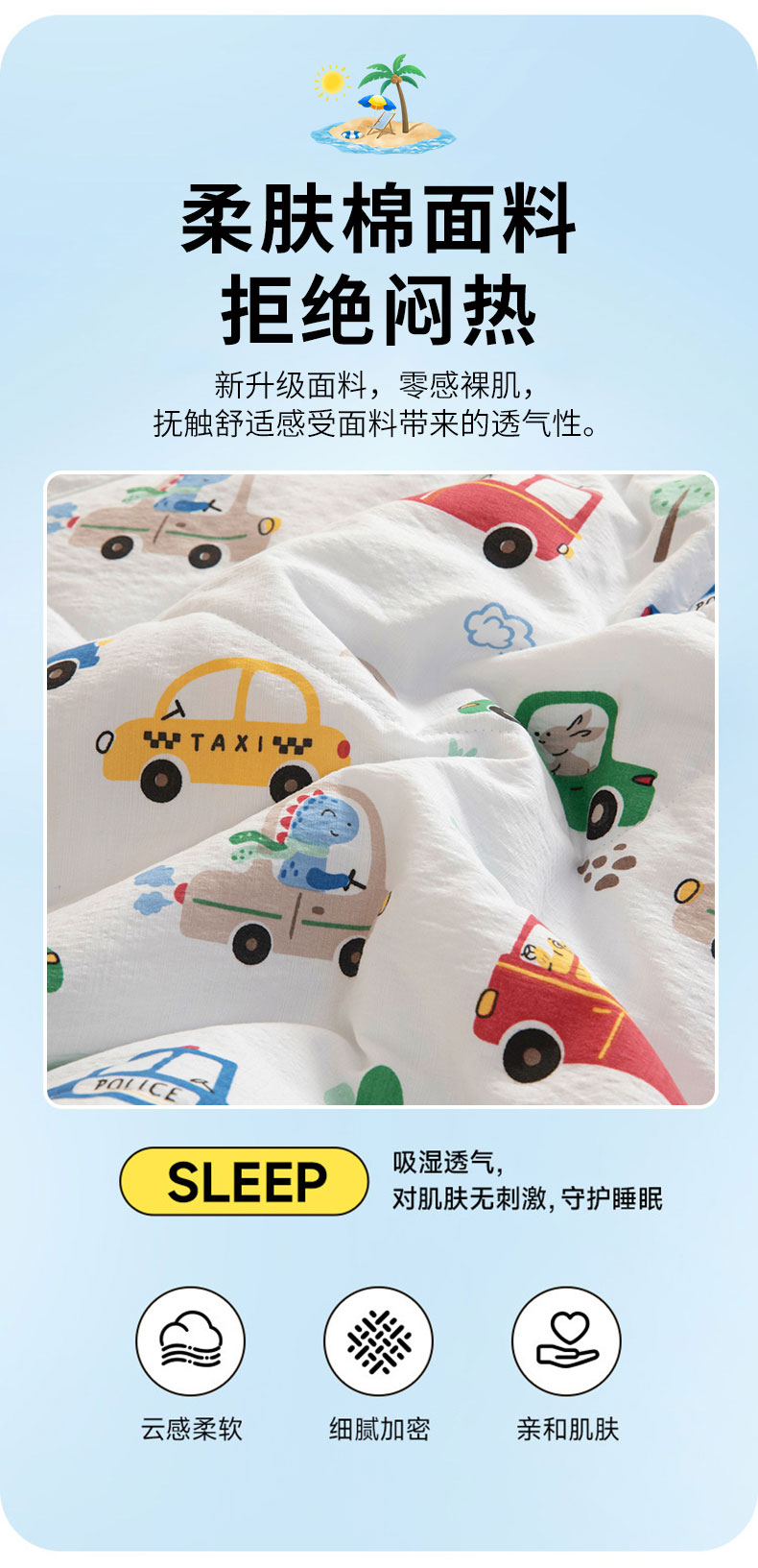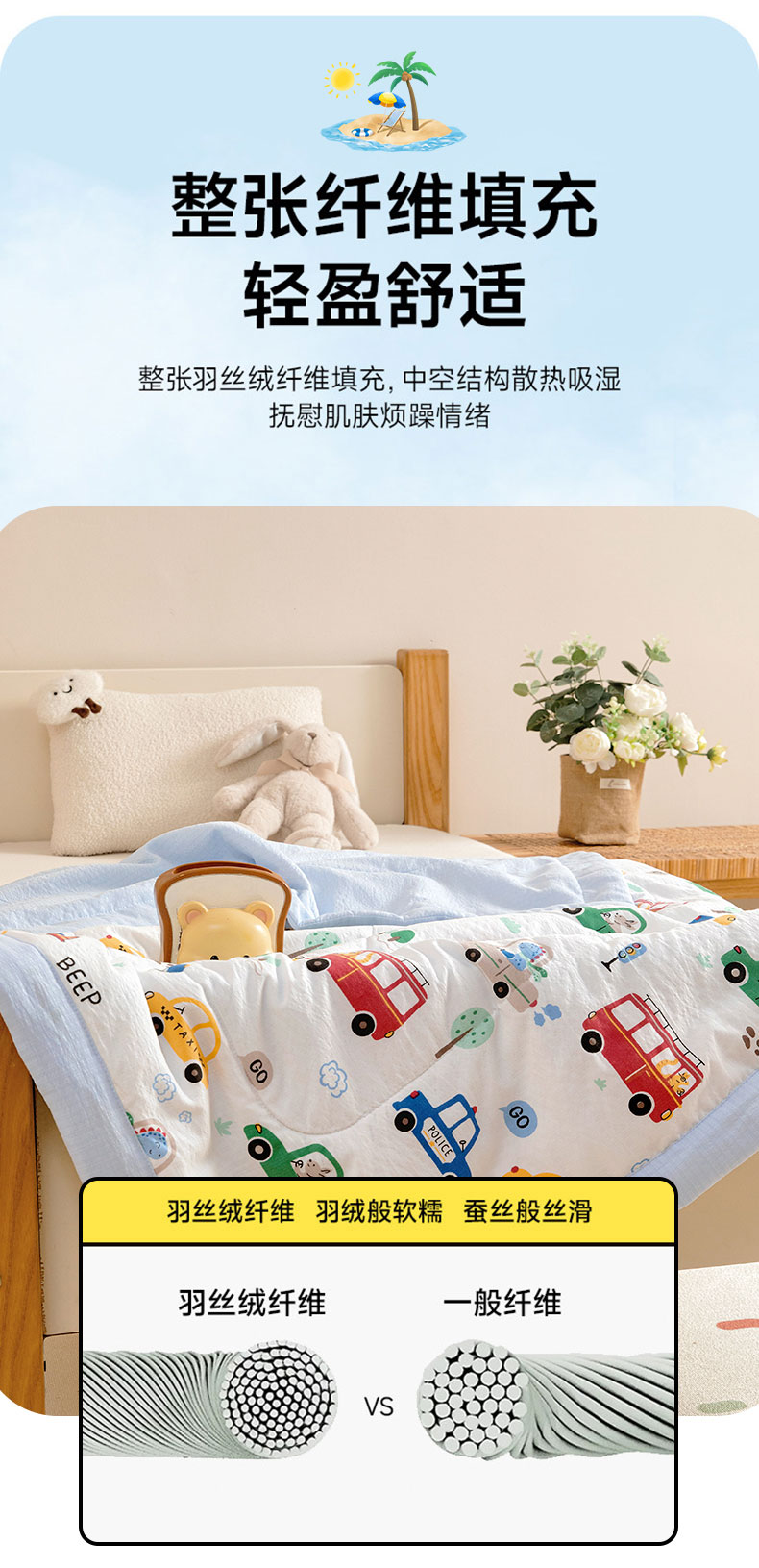(总)御棉坊 2026新款A类柔肤棉儿童夏被宝宝空调被幼儿园午睡夏凉被丝绵薄被子