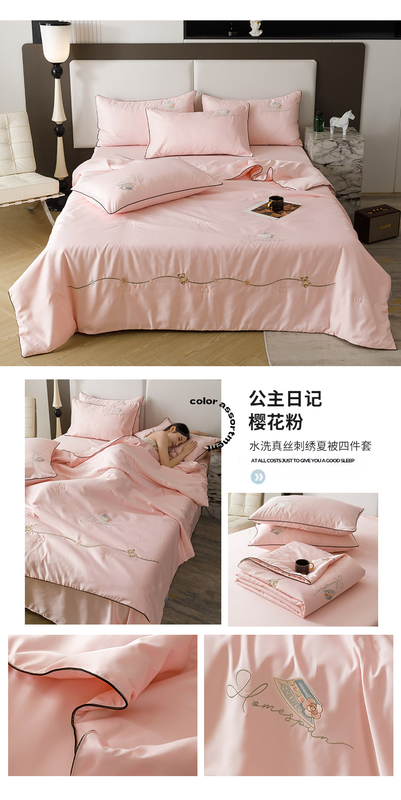 • 91家纺网 家纺一手货源 找家纺 绒世界 2026新款刺绣水洗真丝夏被四件套公主日记系列-风格二 公主日记-风铃兰