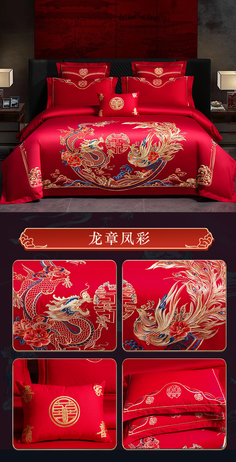 当前位置: 91家纺网 > 商品网购 > 床品套件 > 四件套 > 婚庆四件套 > 富之雅婚庆 2026新款全棉刺绣长绒棉婚庆四件套多件套 龙章凤彩