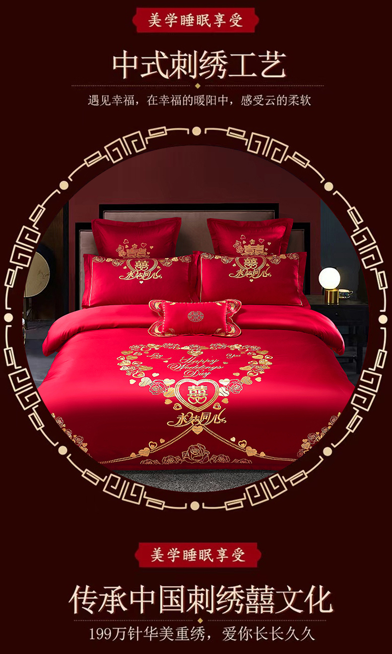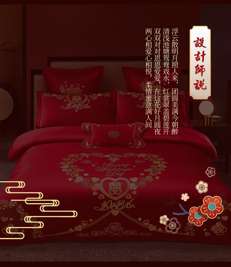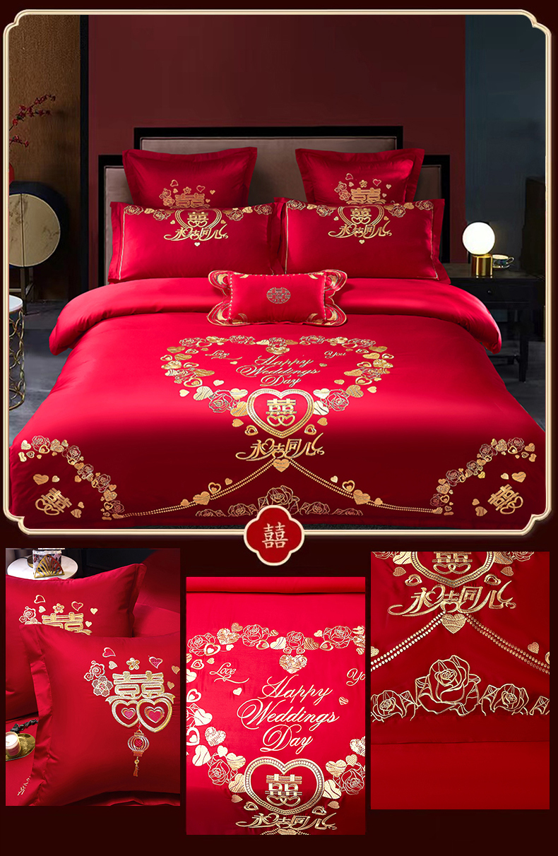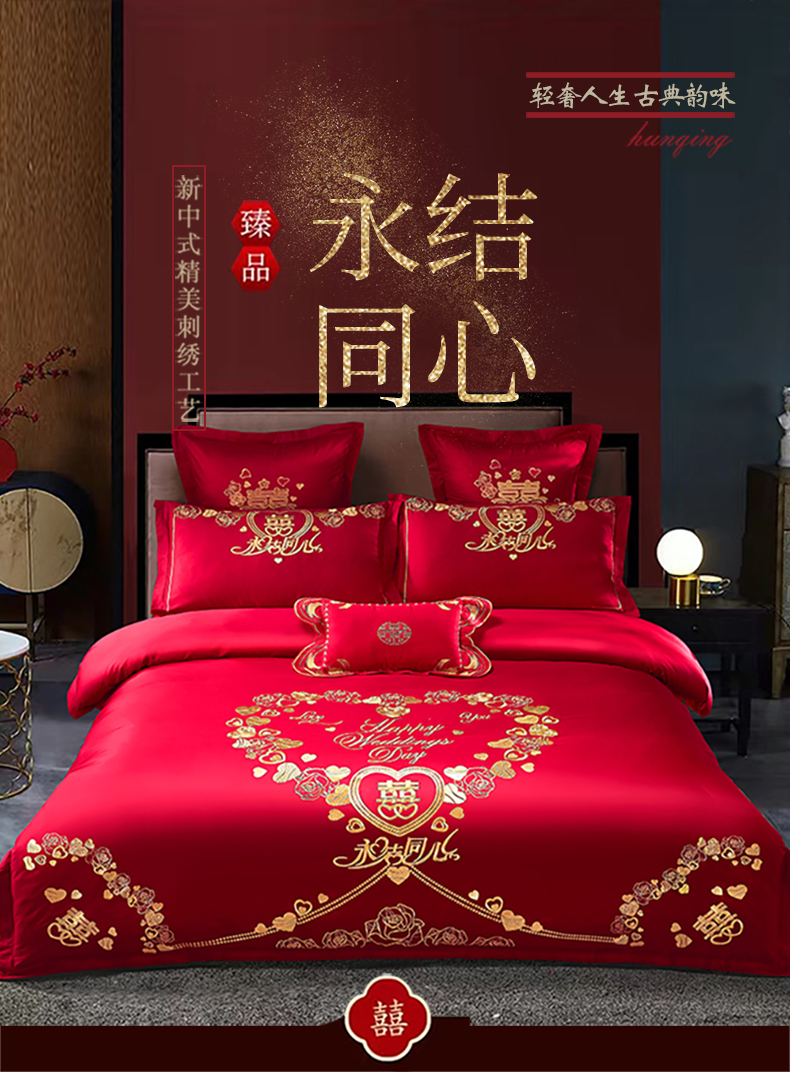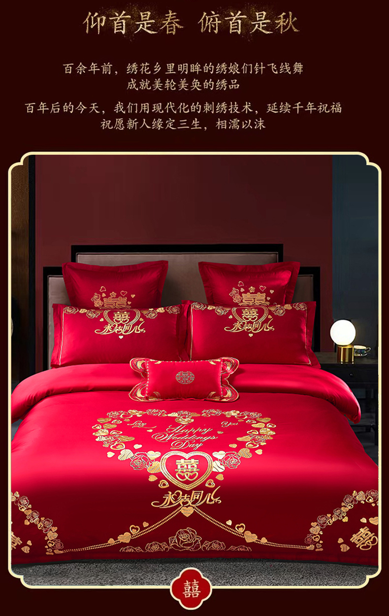 当前位置: 91家纺网 > 商品网购 > 床品套件 > 四件套 > 婚庆四件套 > 富之雅婚庆 2026新款全棉刺绣长绒棉婚庆四件套多件套 永结同心