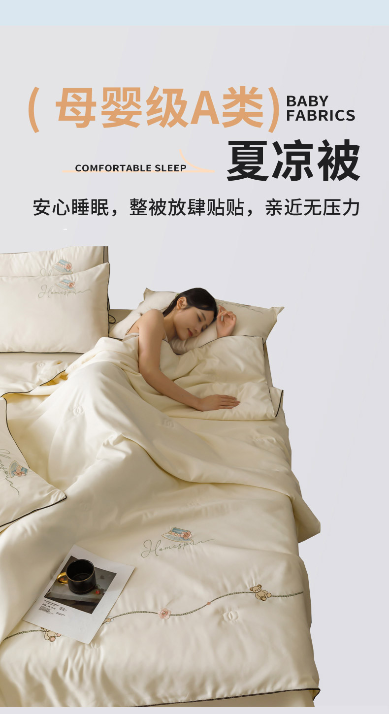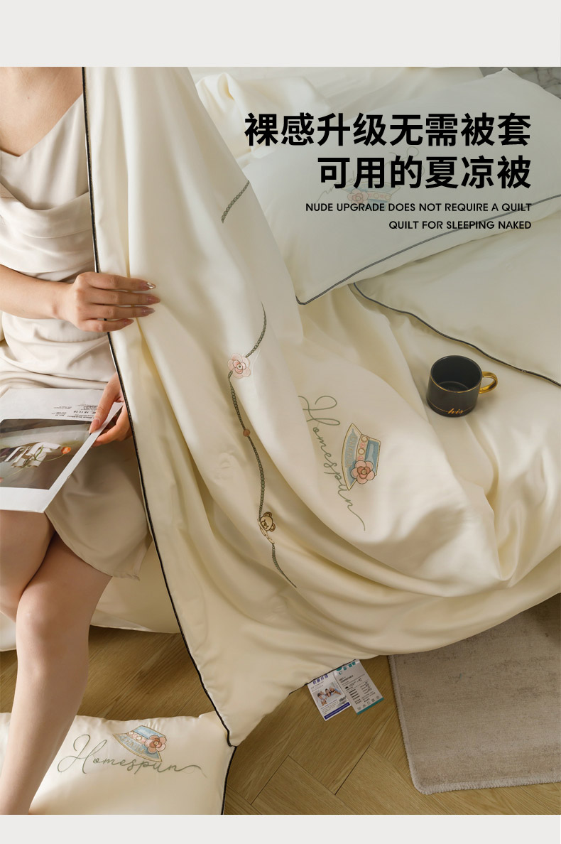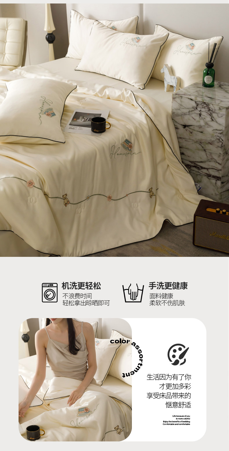 • 91家纺网 家纺一手货源 找家纺 丝印良品 2026新款刺绣水洗真丝夏被四件套公主日记系列-风格二 公主日记-月白