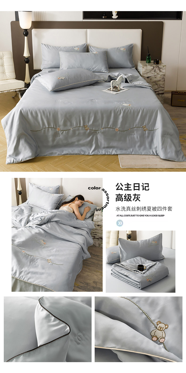 (总)丝印良品 2026新款刺绣水洗真丝夏被四件套公主日记系列-风格二,公主日记-白茶绿,公主日记-宾利蓝,公主日记-风铃兰,公主日记-高级灰,公主日记-香槟,公主日记-樱花粉,公主日记-月白,组合图仅供展示不可下单