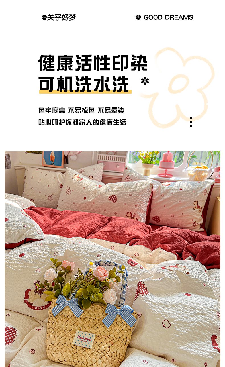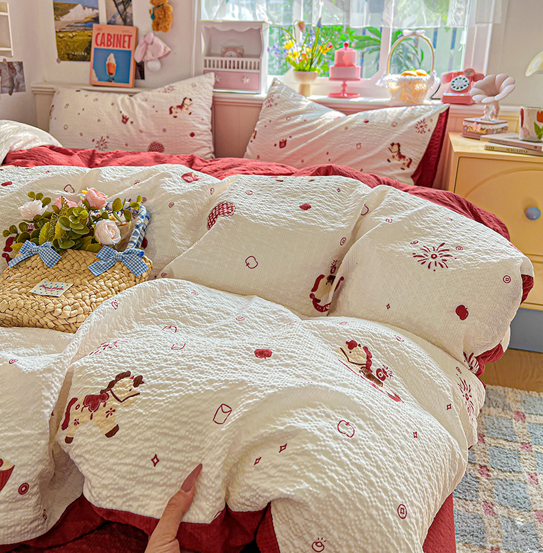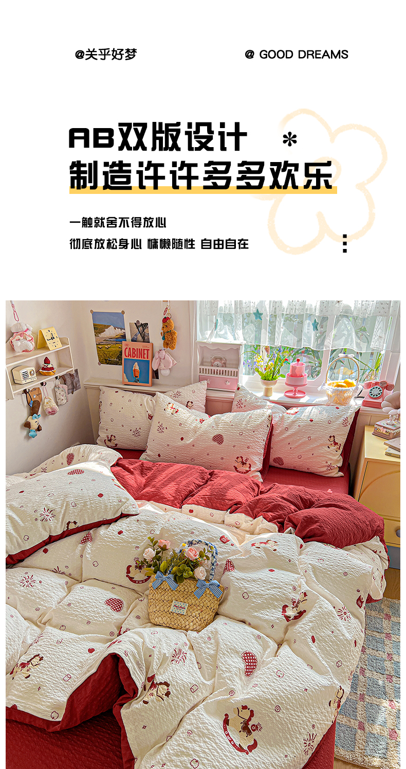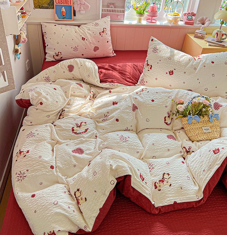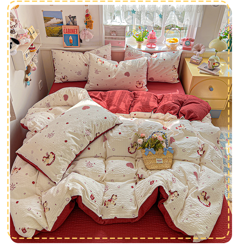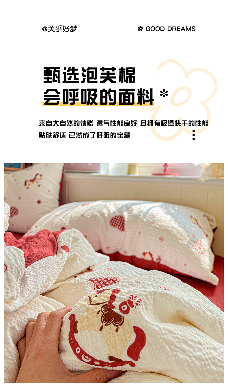 当前位置: 91家纺网 > 商品网购 > 床品套件 > 四件套 > 其它四件套 > 悦织湾家纺 2026新款泡芙棉印花四件套单品单被套枕套时尚轻奢卡通小碎花学生宿舍用品三四件套 鸿运小马