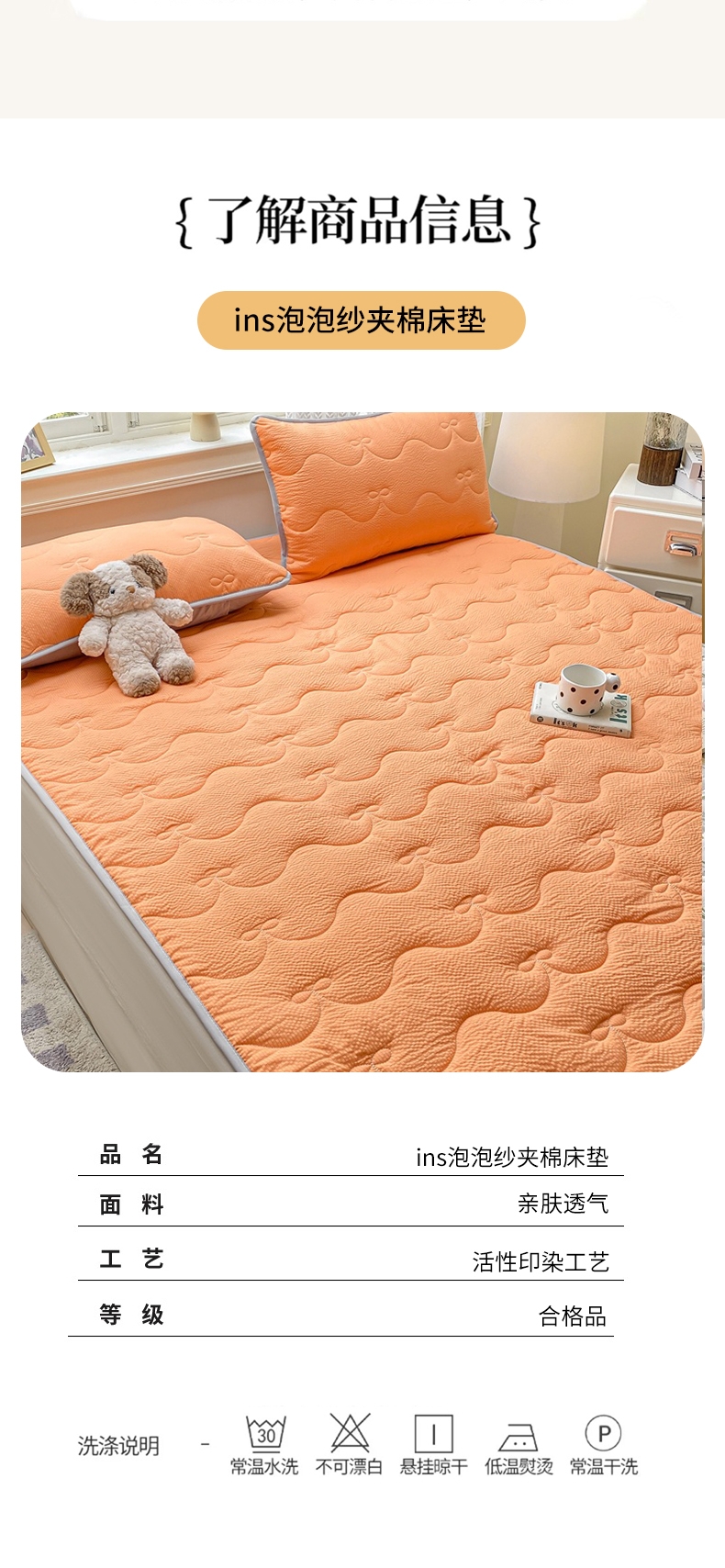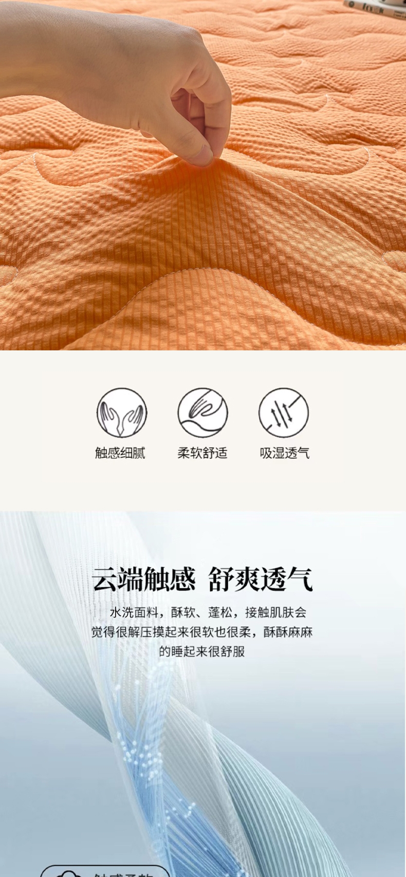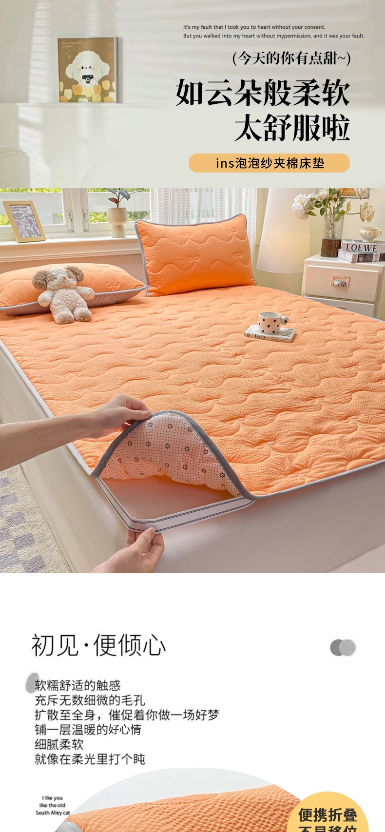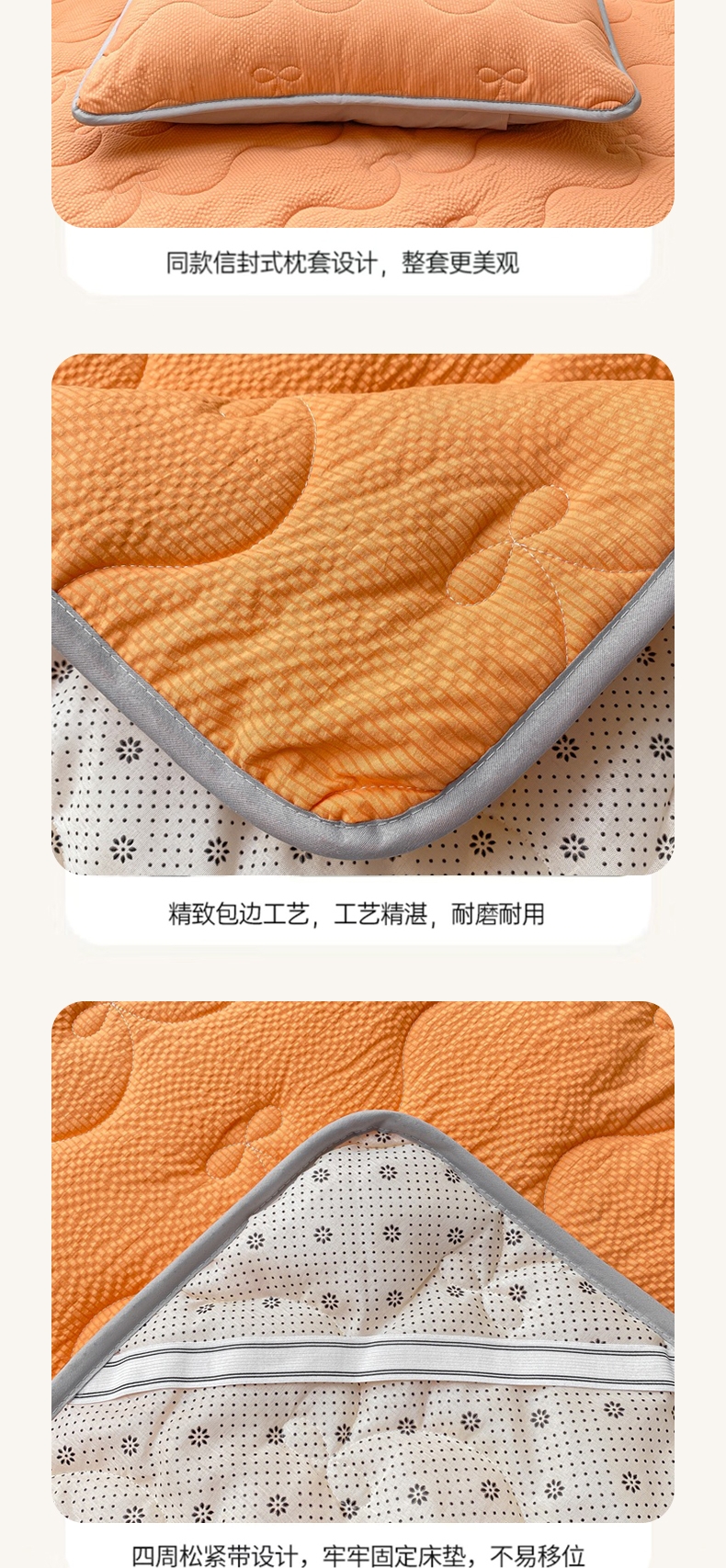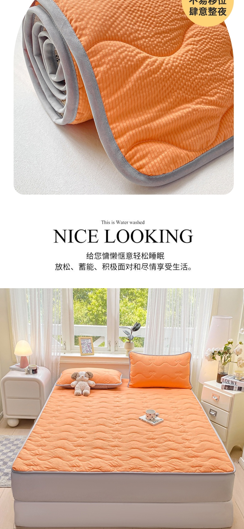 当前位置: 91家纺网 > 商品网购 > 床垫/床褥 > 普通床垫 > 麒东家纺 2026新款春夏泡泡纱夹棉床垫系列 橙色