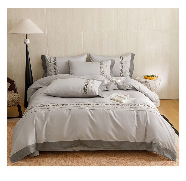 商品名称:艾莱家纺 2026新款A类长绒棉纯棉刺绣四件套-奢意 奢意-紫灰