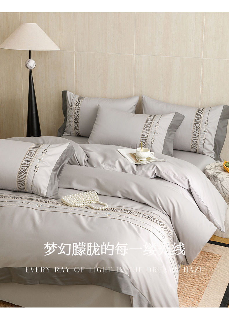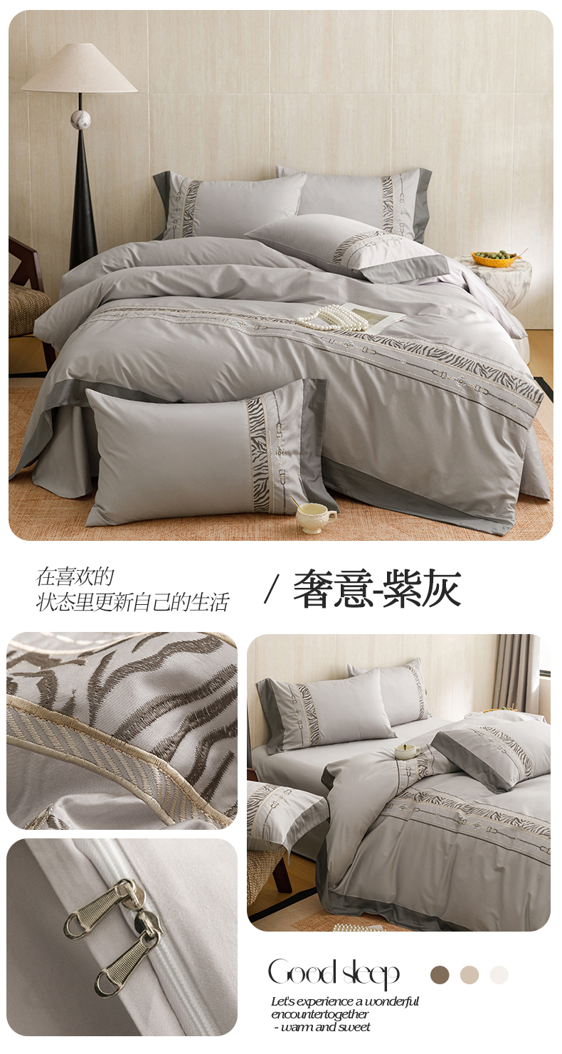 艾莱家纺 2026新款A类长绒棉纯棉刺绣四件套-奢意 奢意-紫灰