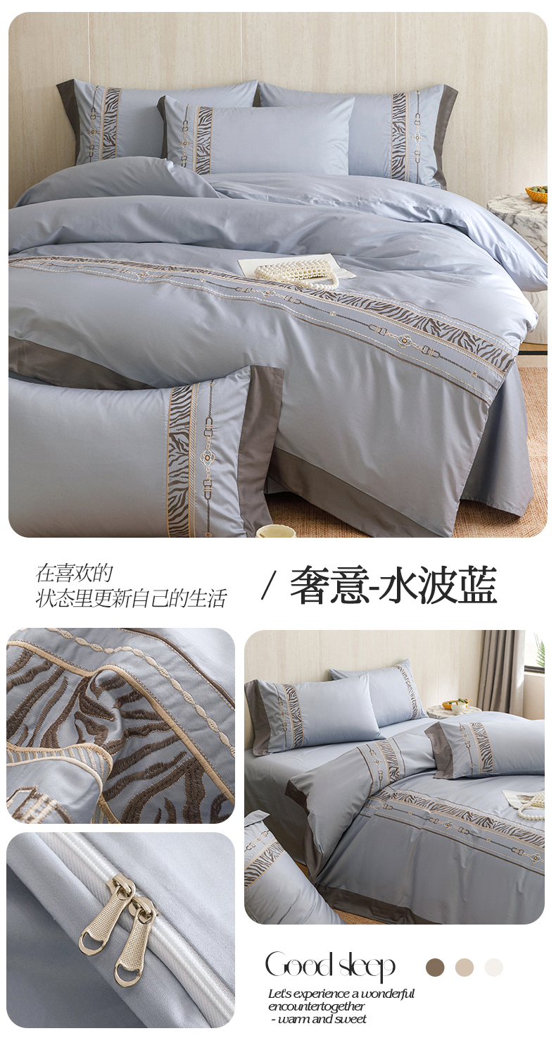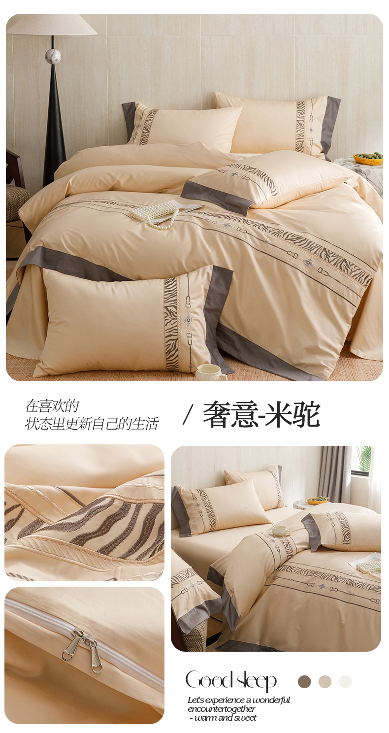 (总)艾莱家纺 2026新款A类长绒棉纯棉刺绣四件套-奢意,奢意-米驼,奢意-趣味粉,奢意-水波蓝,奢意-紫灰