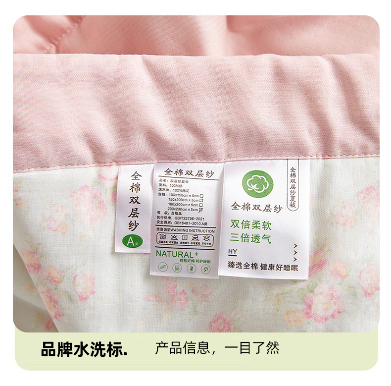 商品名称:海洋家纺 2026新款全棉双层纱夏被被子被芯 米兰