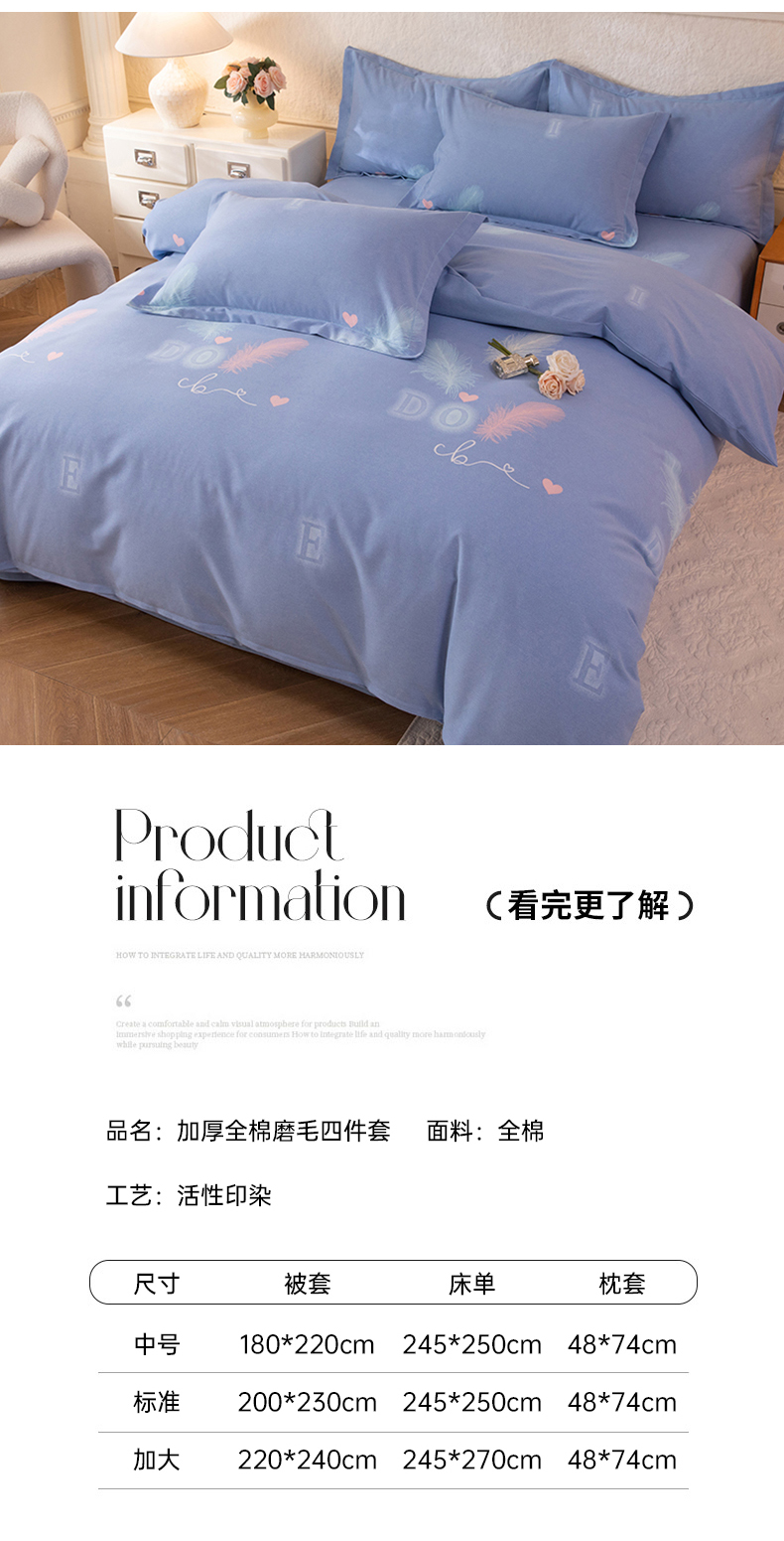 当前位置: 91家纺网 > 商品网购 > 床品套件 > 四件套 > 全棉普通四件套 > 磨毛世家家纺 2026新款多规格铂金磨毛纯棉加厚全棉磨毛四件套 永恒之羽-蓝