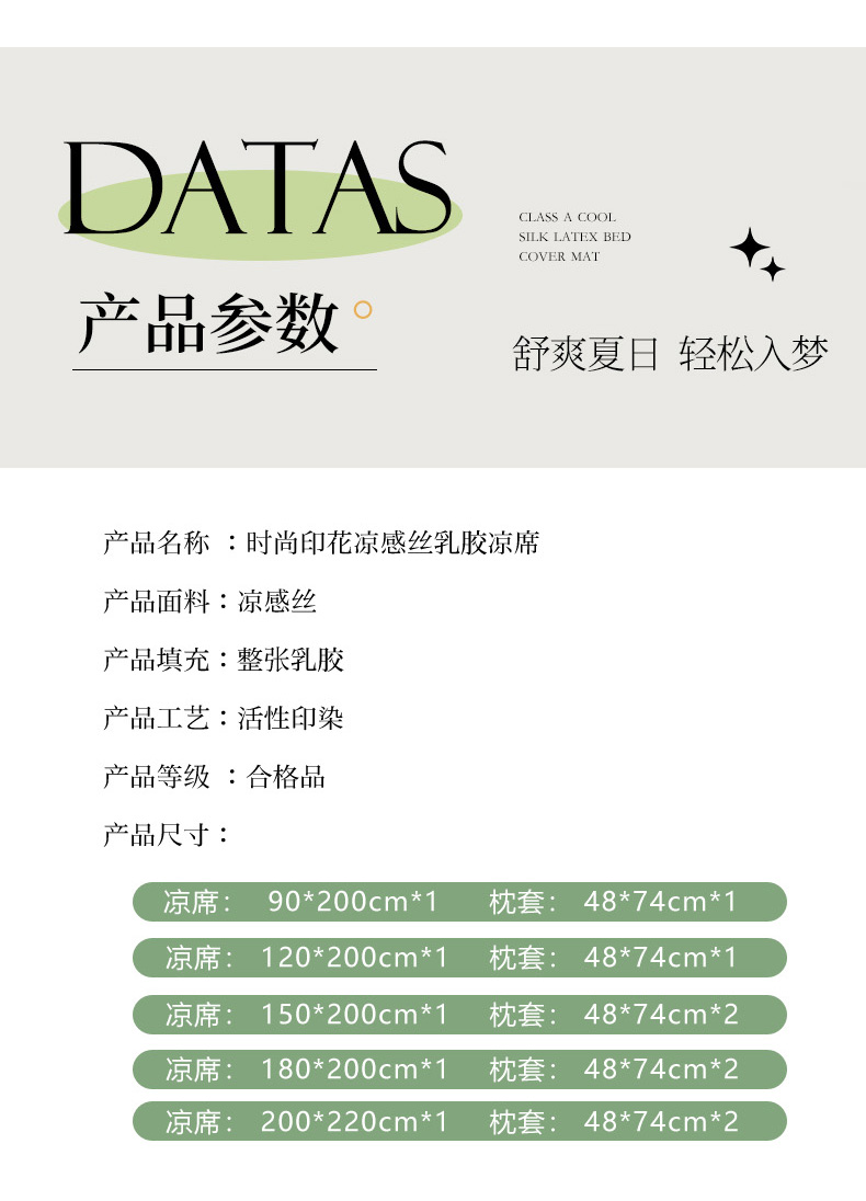 180x200cm凉席+枕套一对 | ¥35.00 |