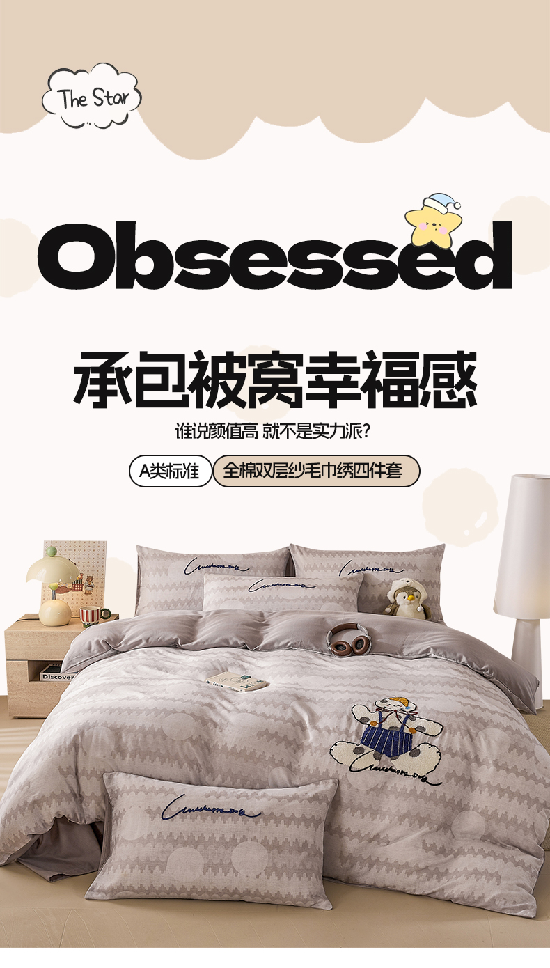 (总)宜家坊 2026新款A类全棉双层纱毛巾绣四件套