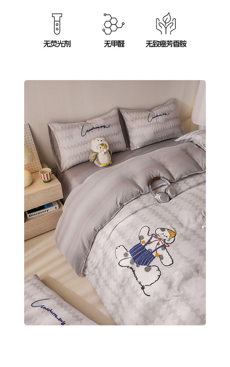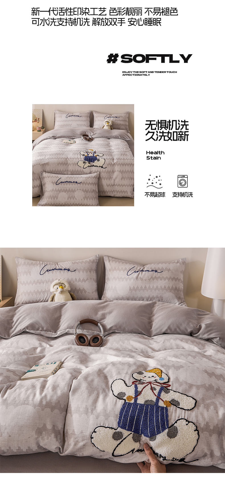 (总)宜家坊 2026直播热款卡通贴布绣加厚仿棉古棉单人双人单倍套三四件套,奥特兄妹,吉象三宝,美小蒂,萌萌兔绿,旺旺狗狗,熊猫卡皮