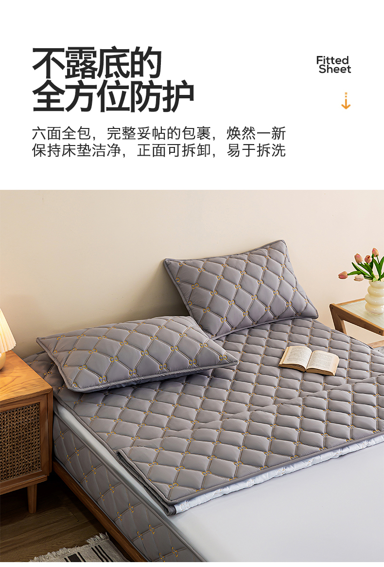 • 91家纺网 家纺一手货源 找家纺 云木里 2026新款绣花磨毛水洗棉六面全包床笠床垫保护套拉链床笠 床笠单件 刺绣款-白色-五面夹棉