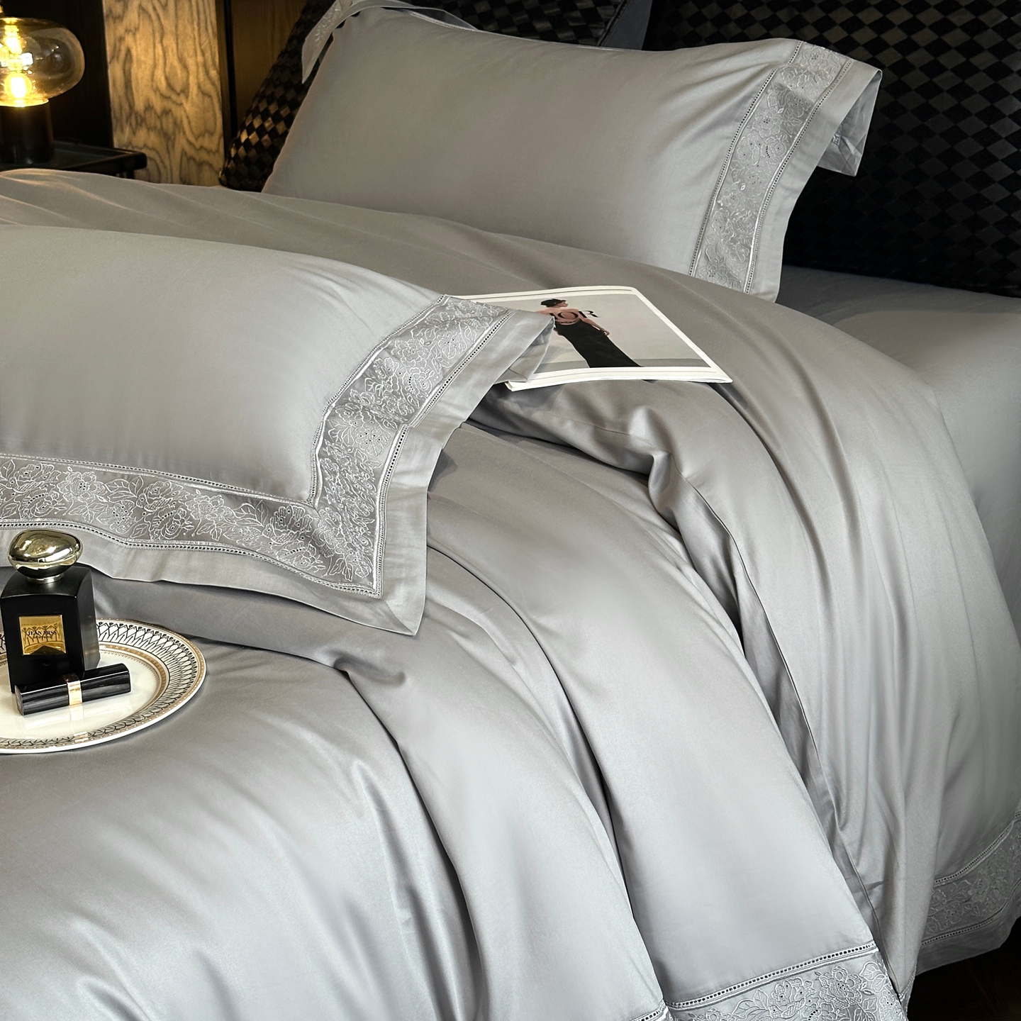 (总)时亿家居 2026新款100支全棉纯棉绣花四件套-至简逸品系列,逸品-粉,逸品-红,逸品-灰,逸品-卡其,逸品-蓝,逸品-香槟