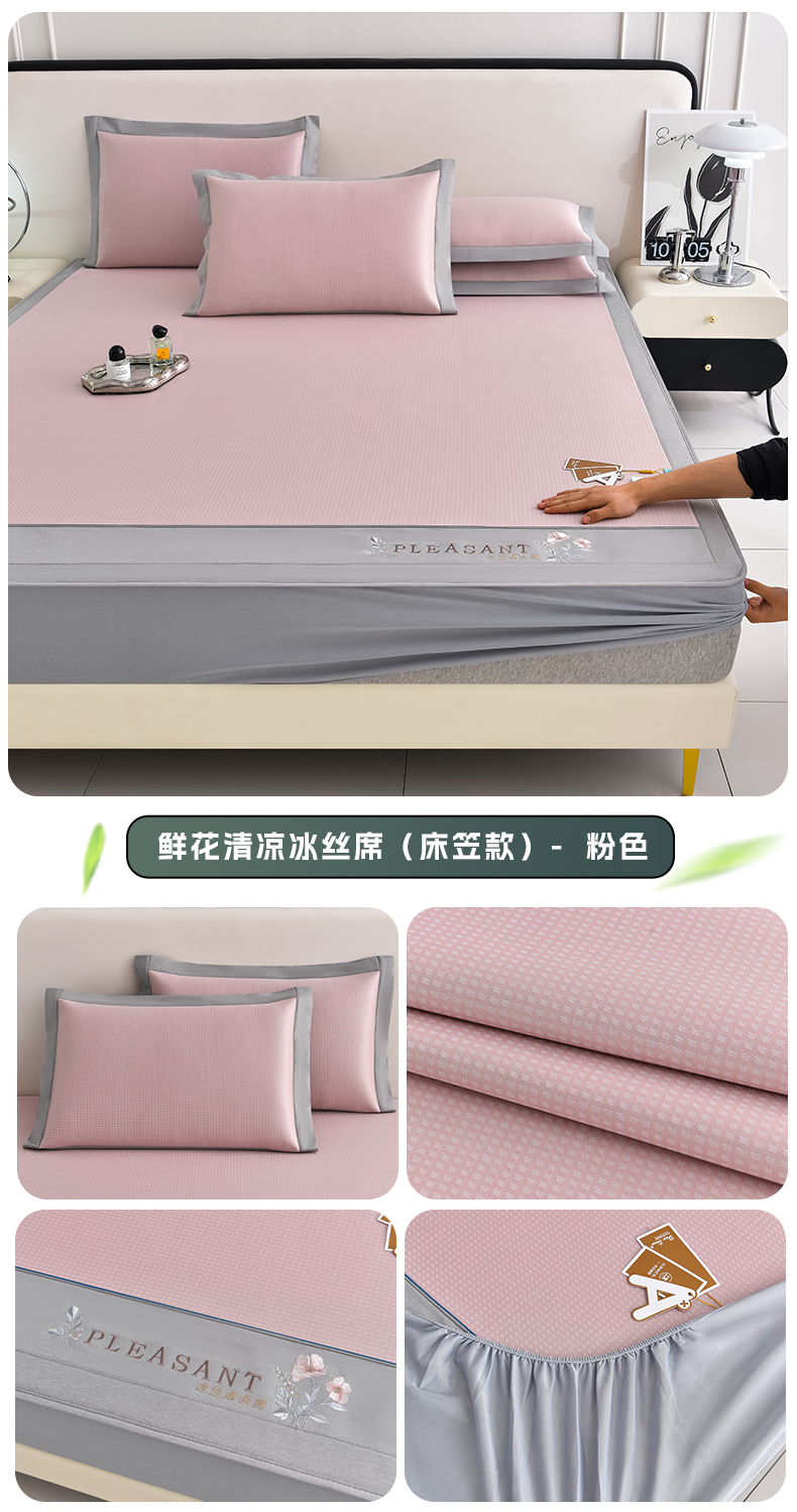 (总)2023新款超精密冰丝席-小斜纹系列-床笠款藤席凉席竹席,粉色,蓝色,绿色,银灰