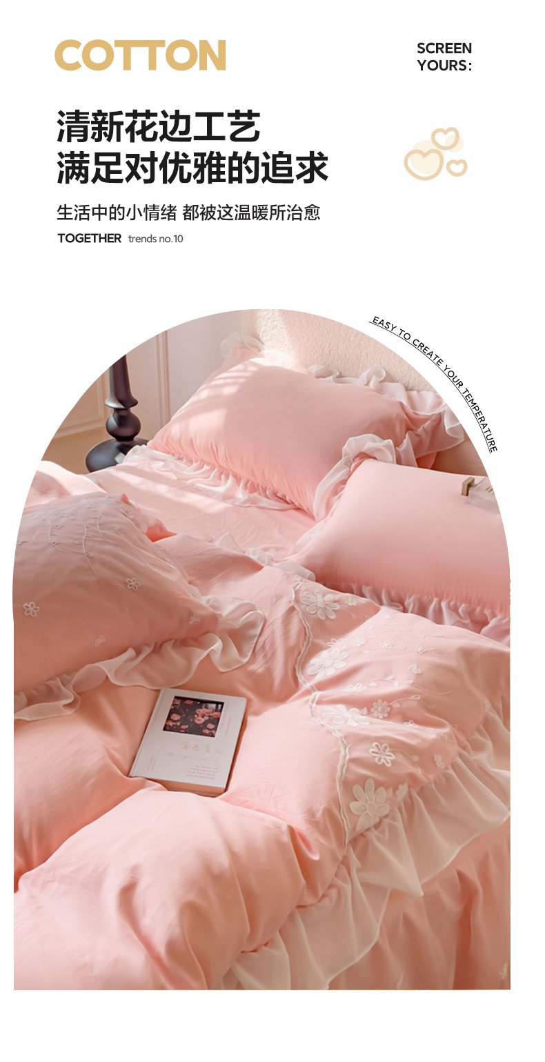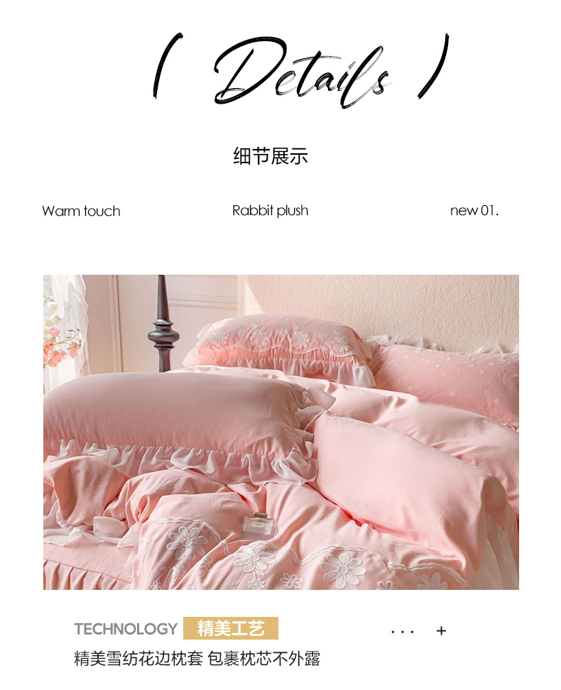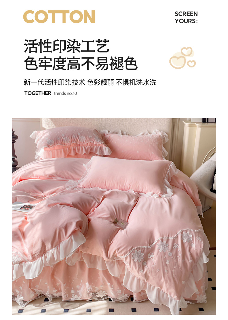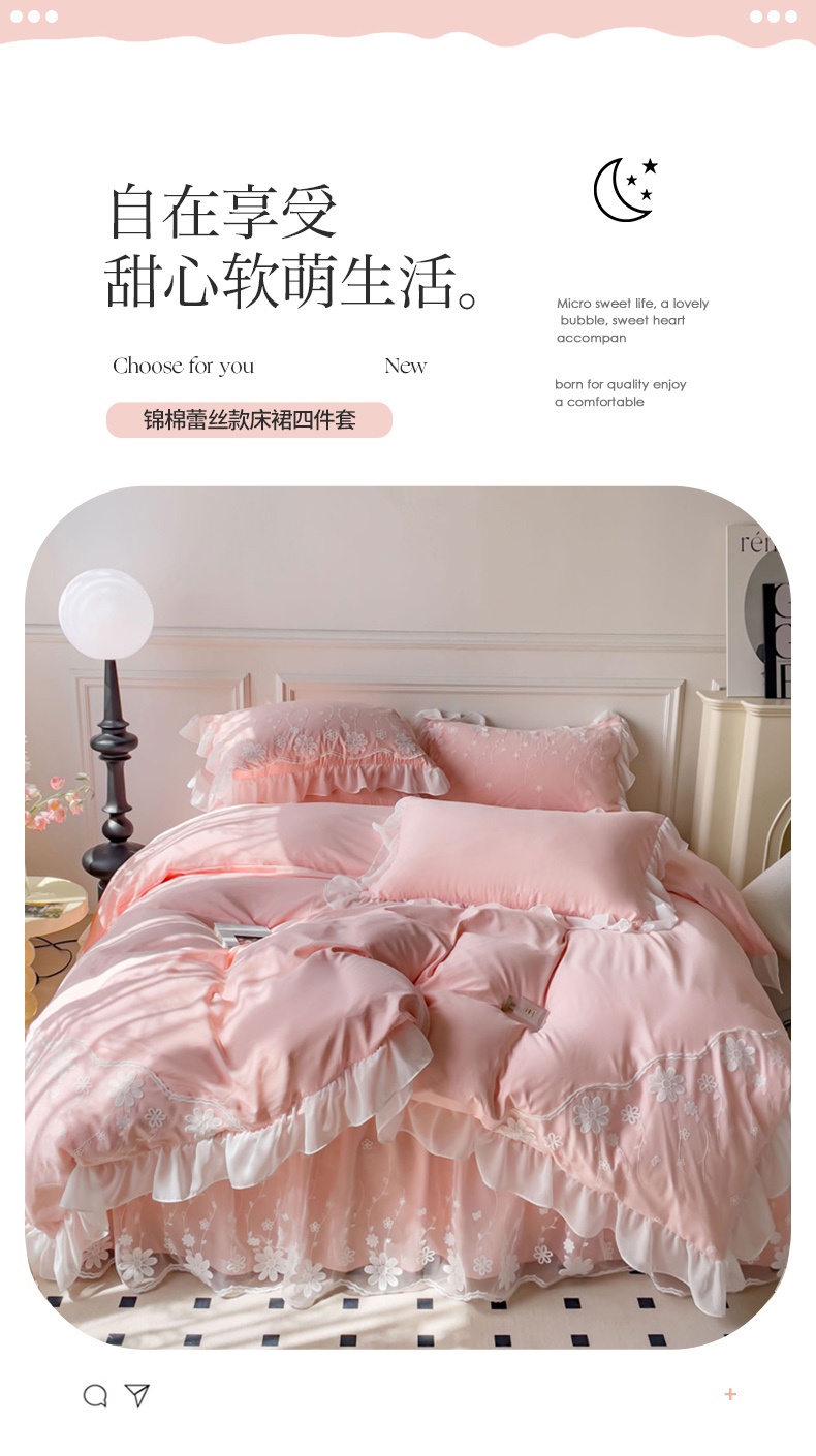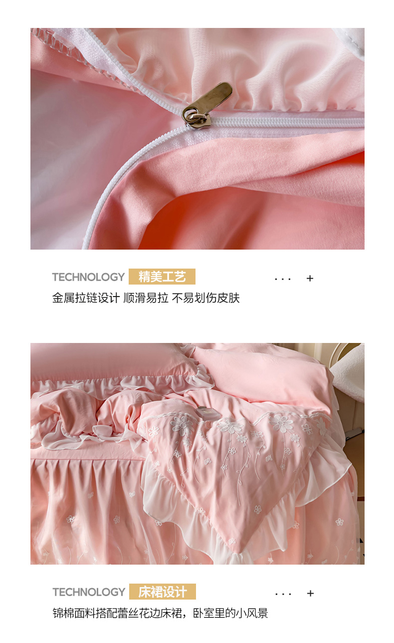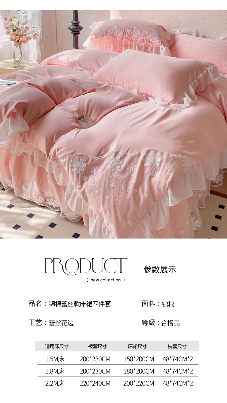 商品名称:睡美人 2026新款锦棉蕾丝款系列韩版公主风床裙四件套-花舞 花舞-蜜桃粉