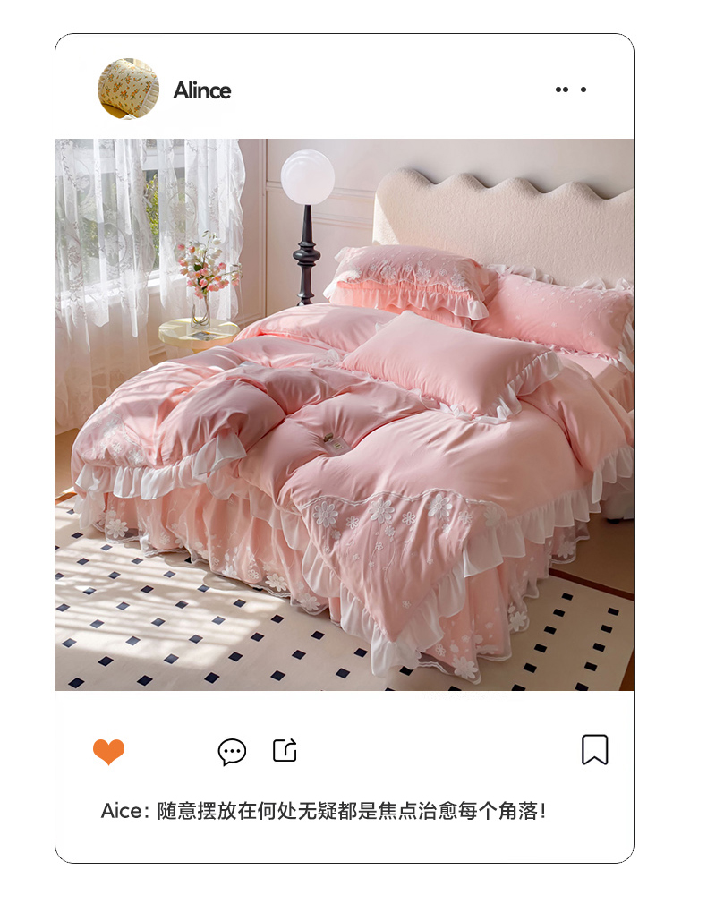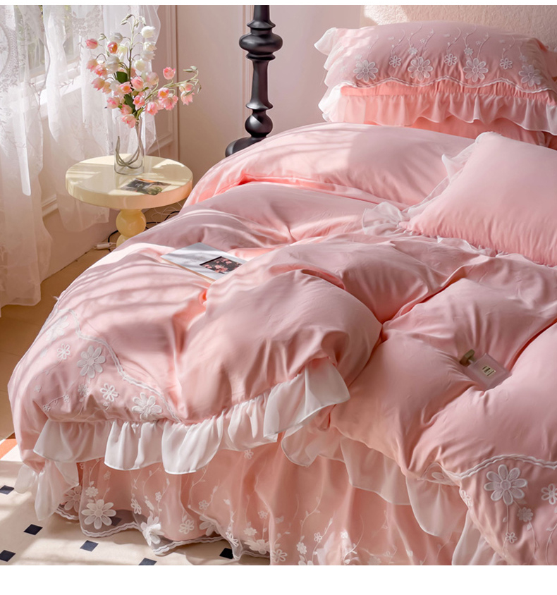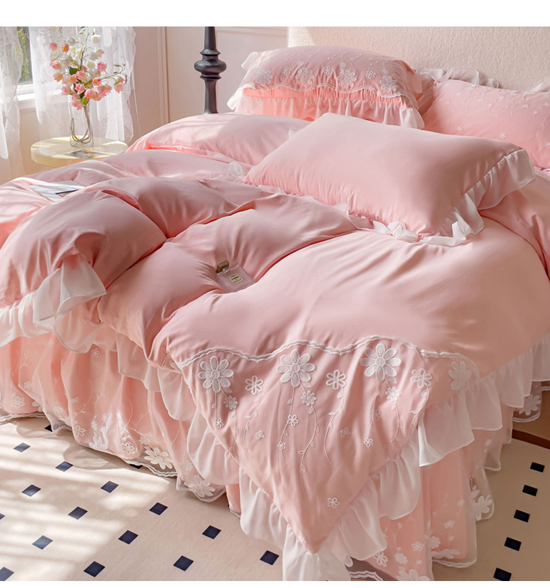 睡美人 2026新款锦棉蕾丝款系列韩版公主风床裙四件套-花舞 花舞-蜜桃粉