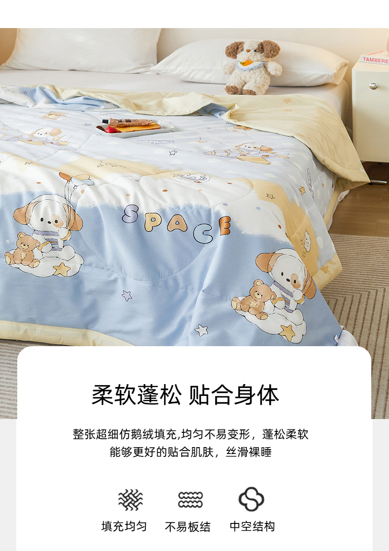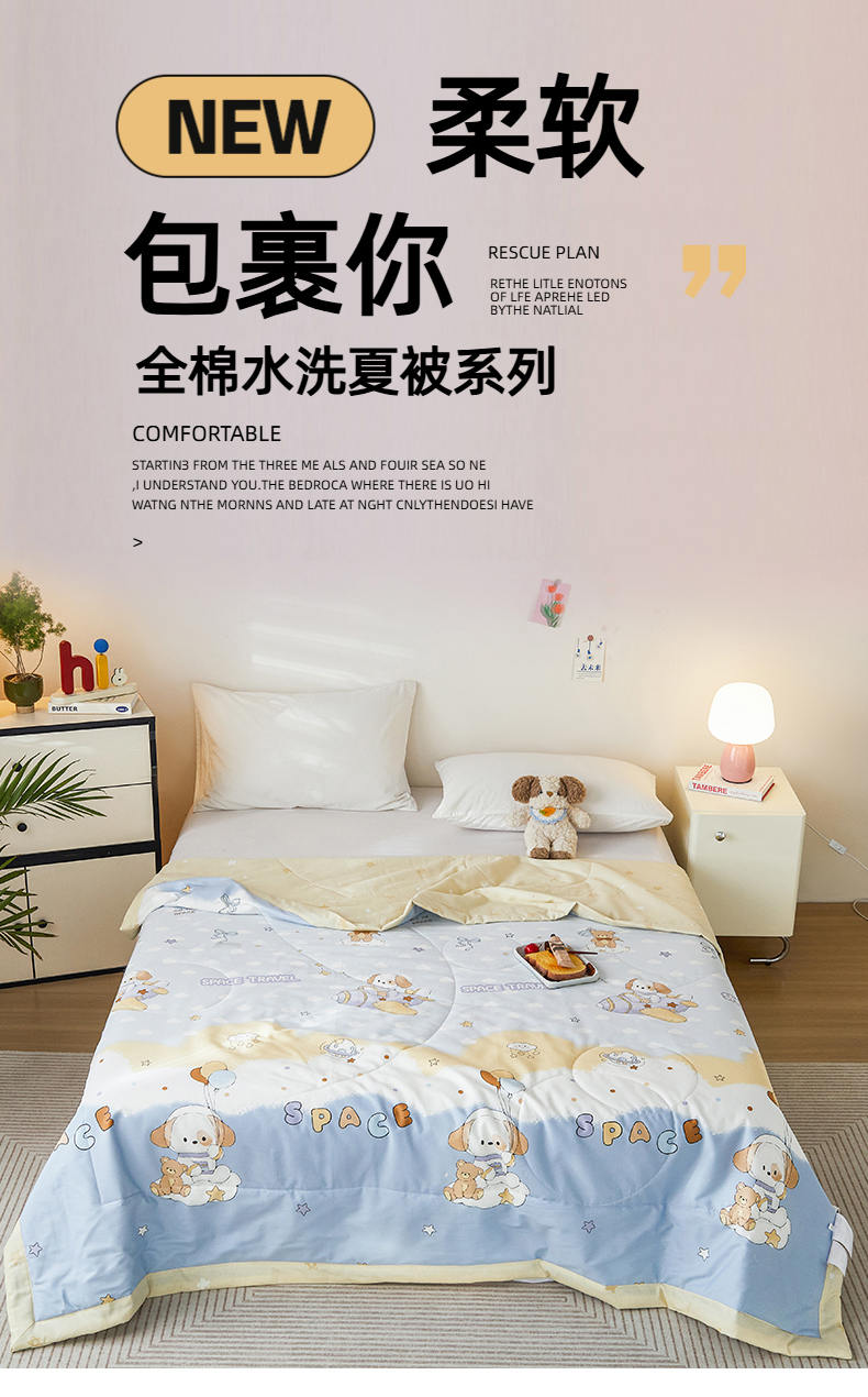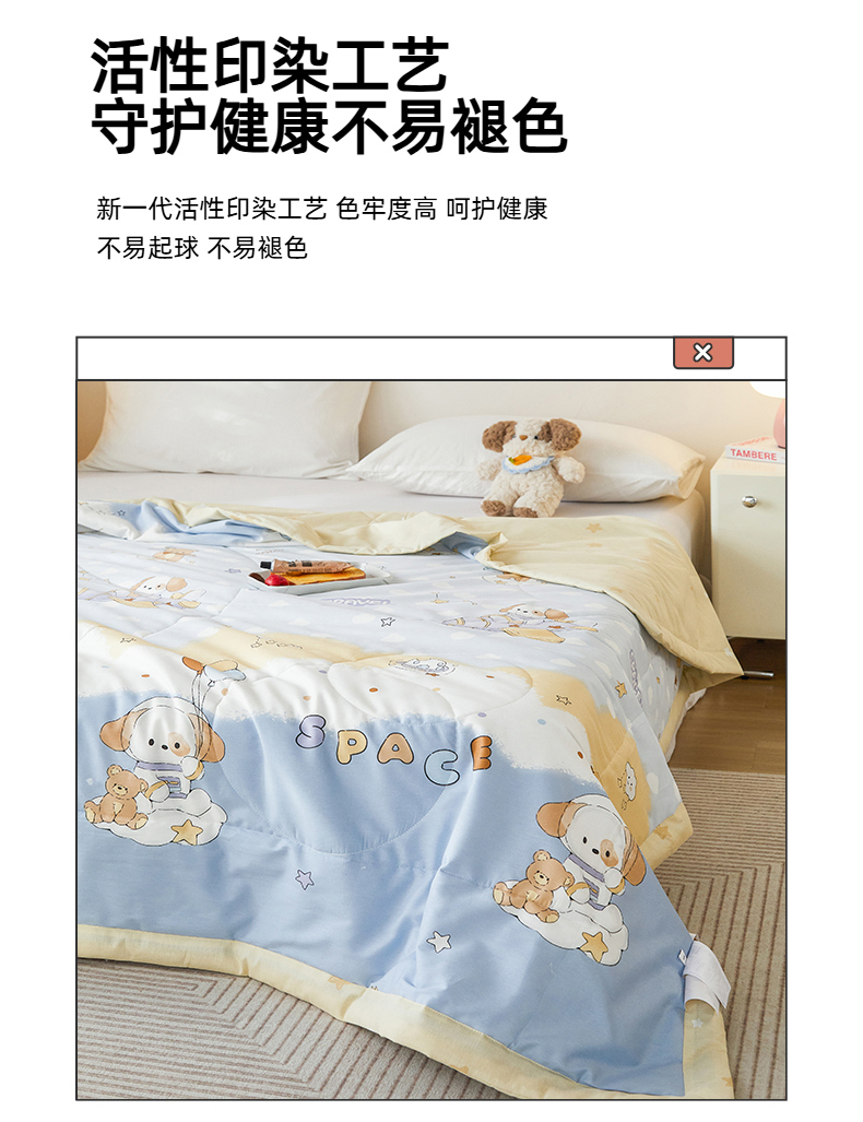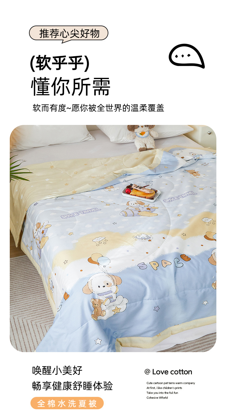 商品名称:亿莱鑫 2026春夏新款全棉水洗印花夏被夏凉被空调被 太空小狗