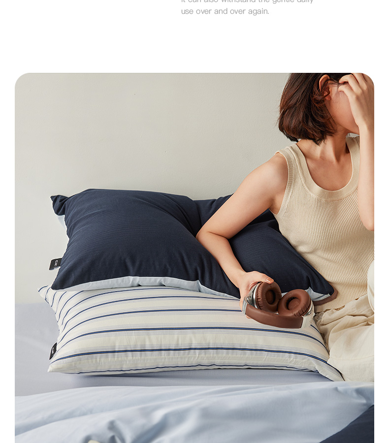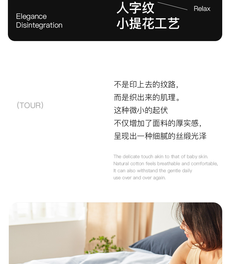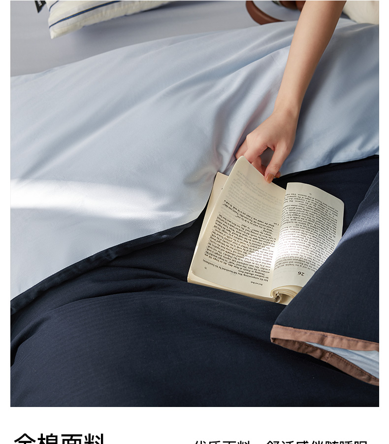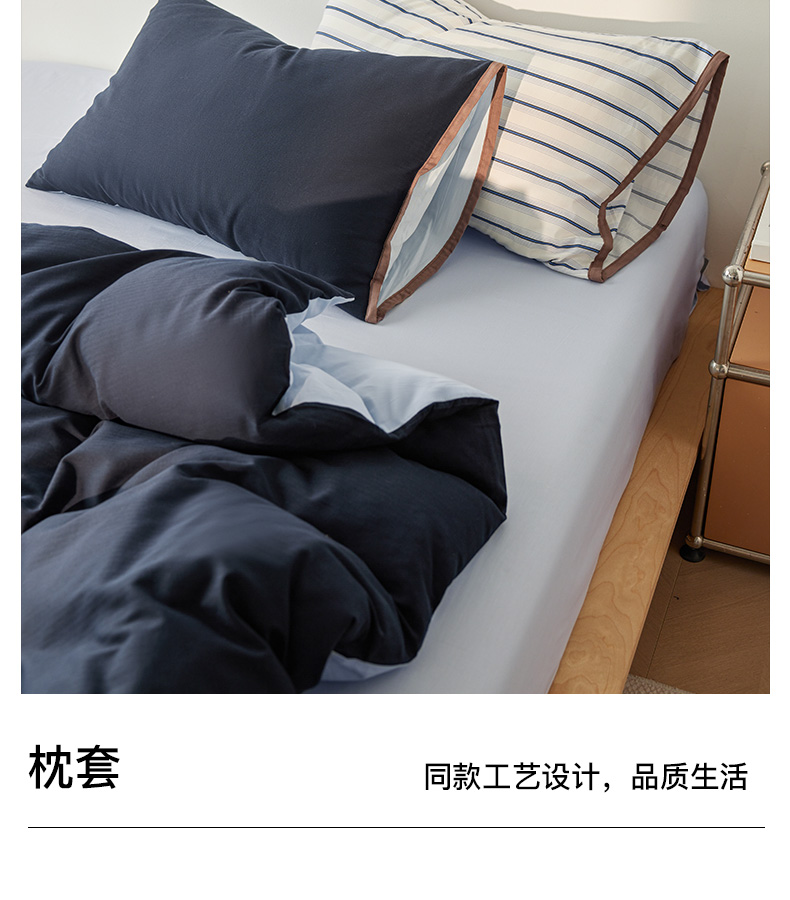 商品名称:卡姿家纺 2026春夏全棉人字纹小提花拼色系列四件套 人字纹藏青
