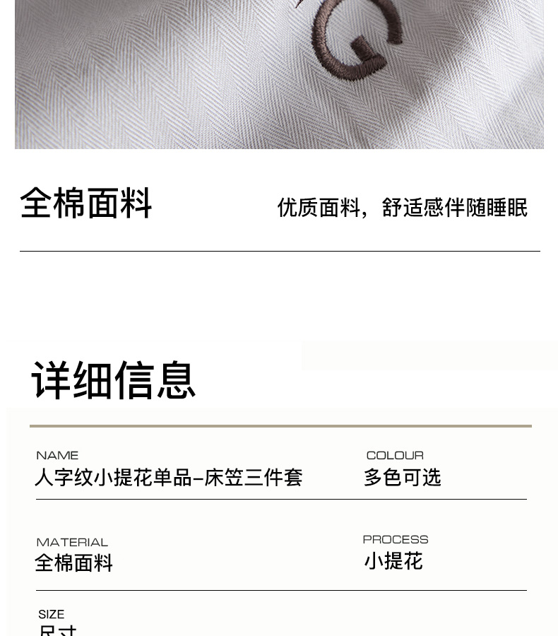 当前位置: 91家纺网 > 商品网购 > 床品套件 > 三件套 > 卡姿家纺 2026春夏全棉人字纹小提花单品-床笠三件套 床笠-经典灰