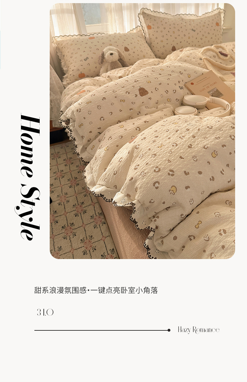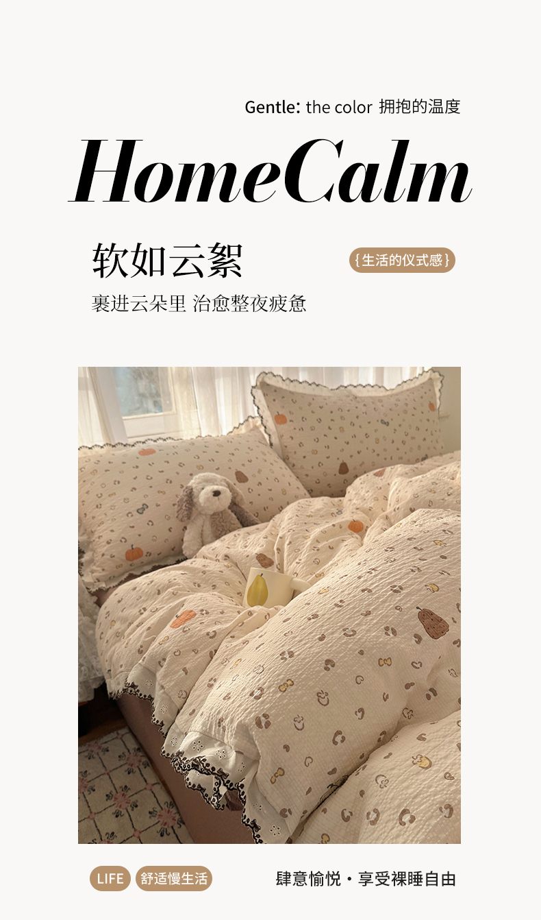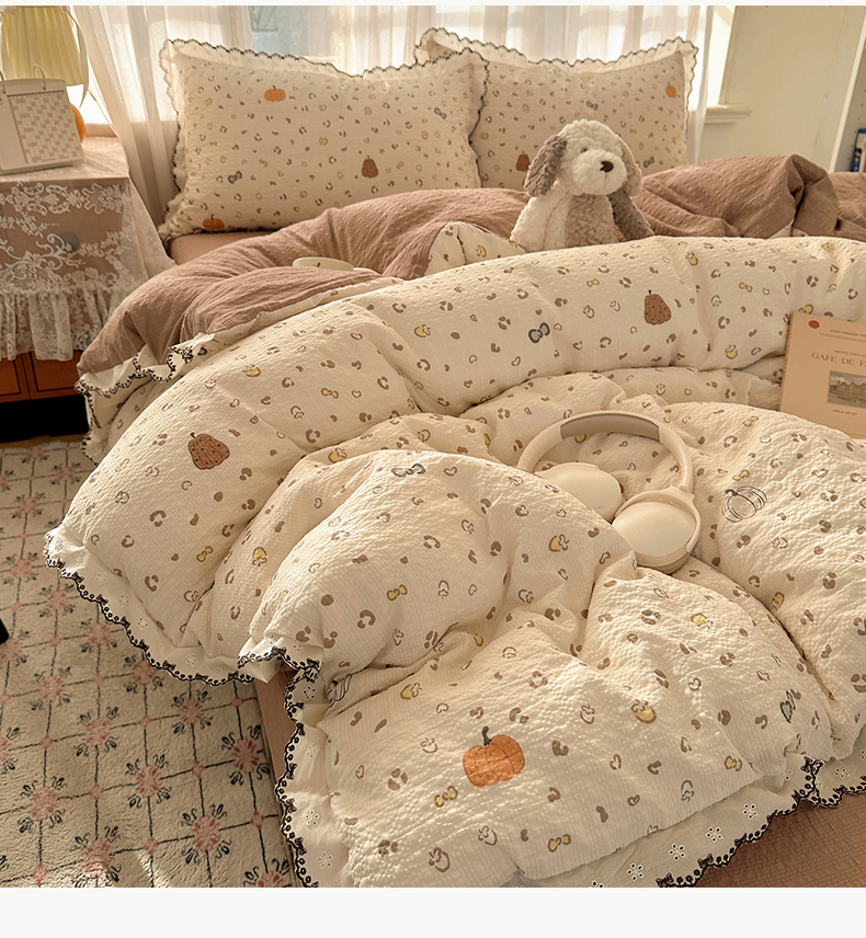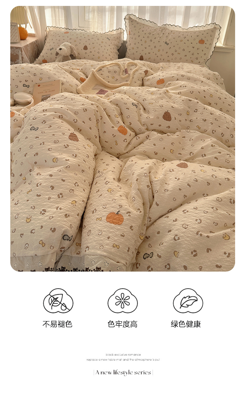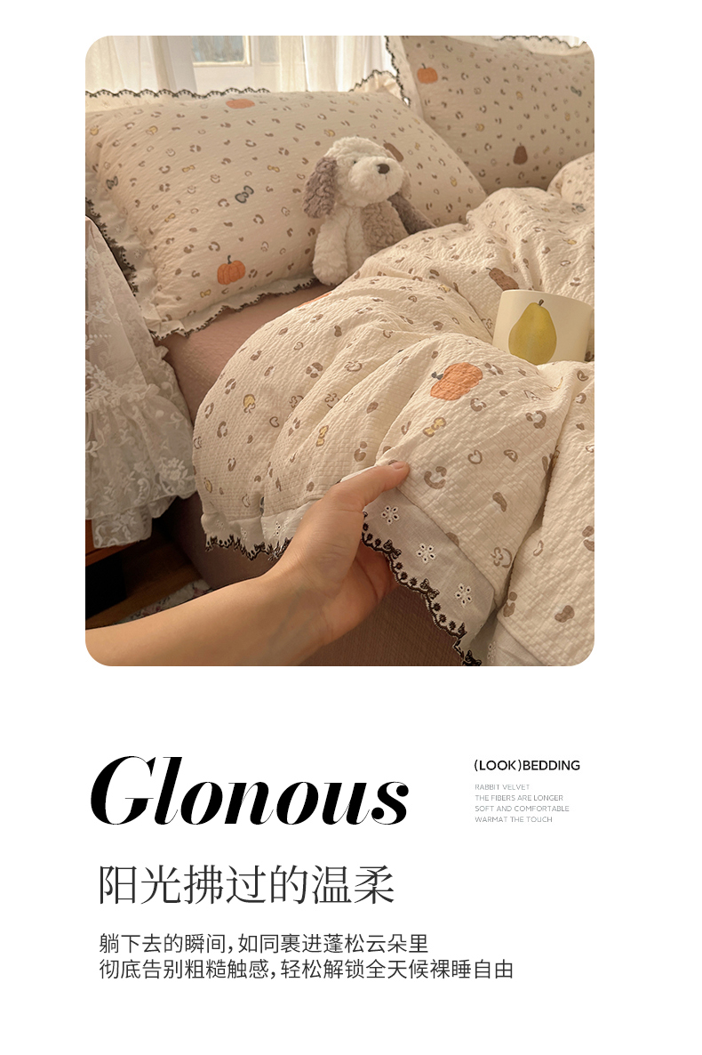 当前位置: 91家纺网 > 商品网购 > 床品套件 > 四件套 > 其它四件套 > 凯洛奇 2026新款高品质A类泡芙纱甜栗花边套件系列一小红书推荐 软萌南瓜派