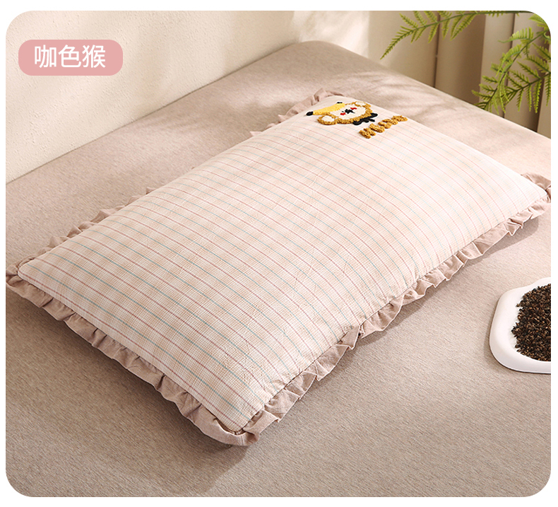 (总)蔻眠 双层纱可爱猫卡通荞麦护颈枕芯儿童学生成人枕头,主图,格子浅棕,格子深棕