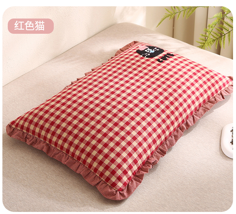 商品名称:蔻眠 全棉毛巾绣全荞麦枕头儿童学生花边款护颈枕芯 红色猫