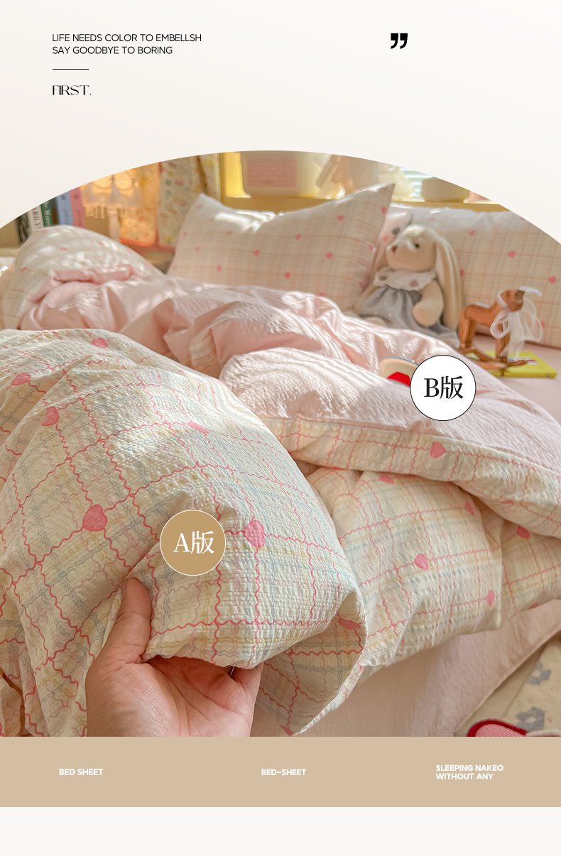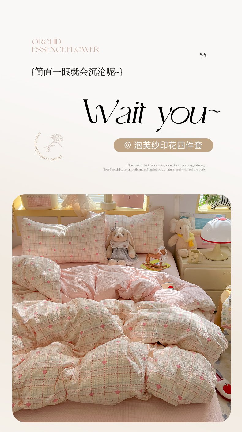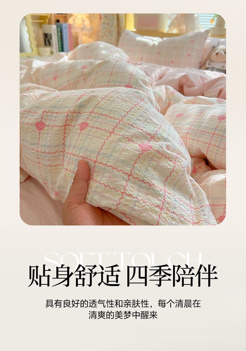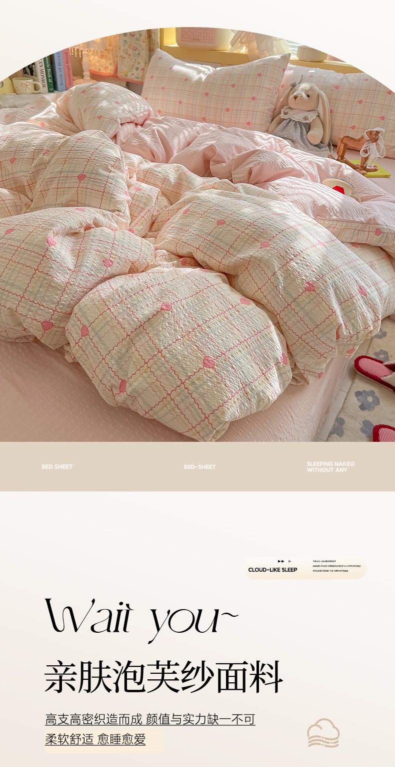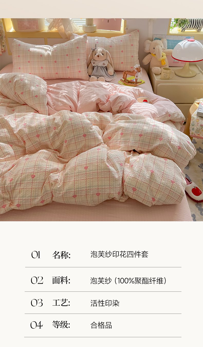 当前位置: 91家纺网 > 商品网购 > 床品套件 > 四件套 > 其它四件套 > 韩巢家纺 2026新款泡芙纱四件套 格格心