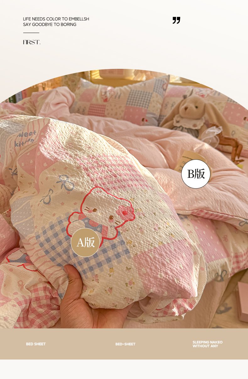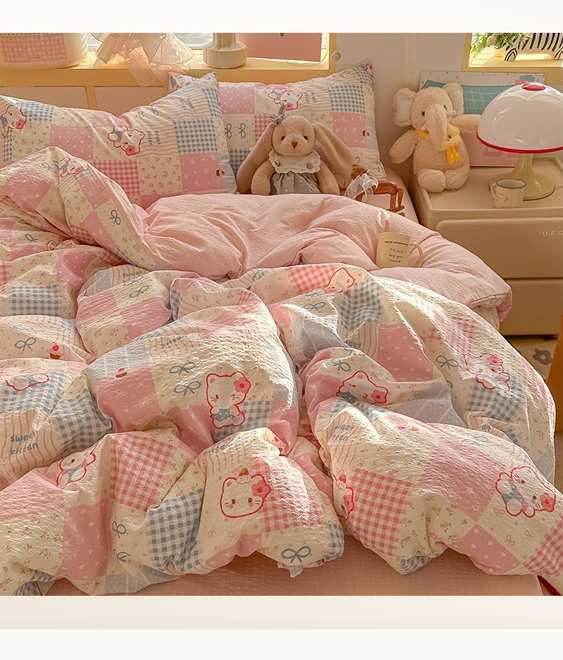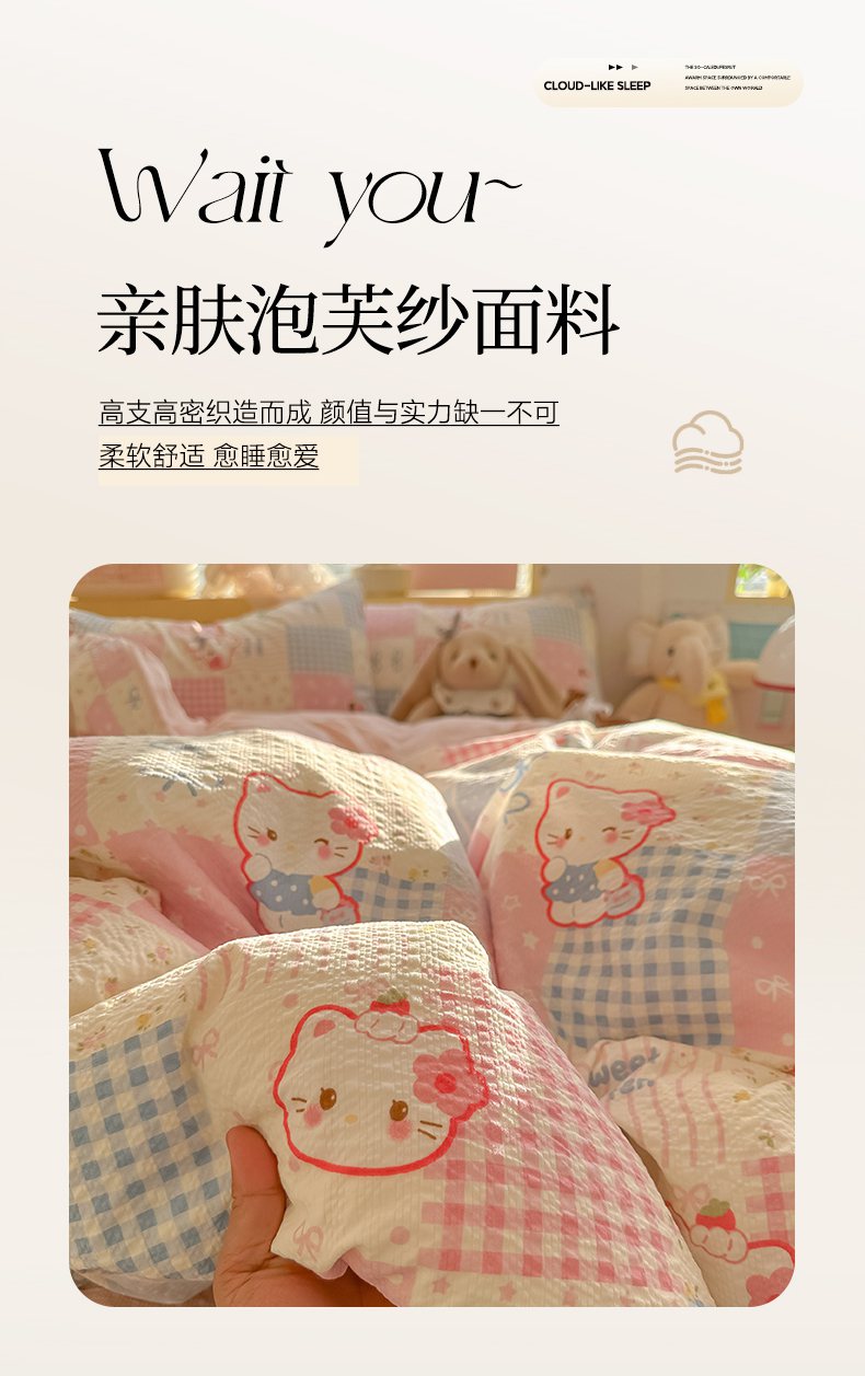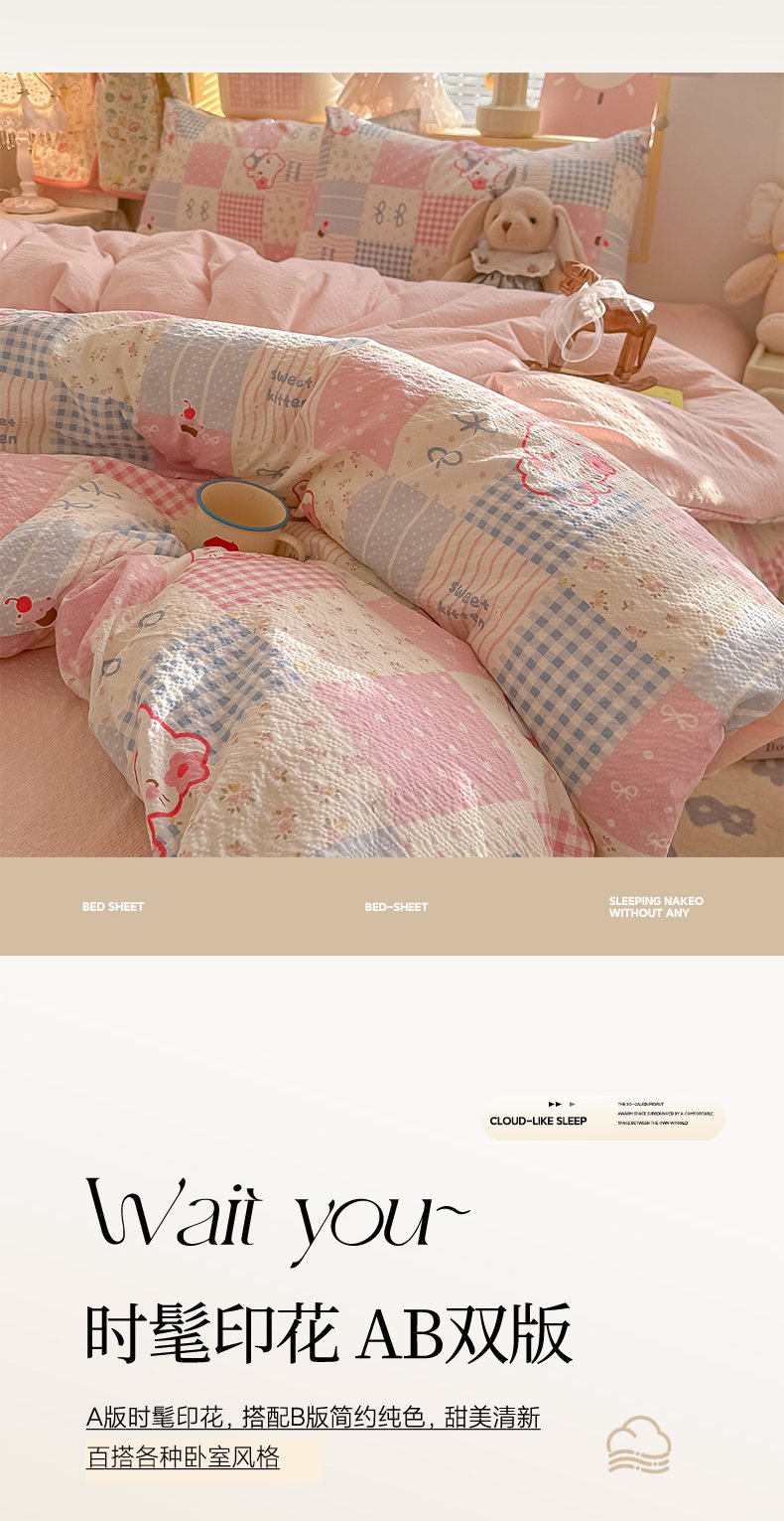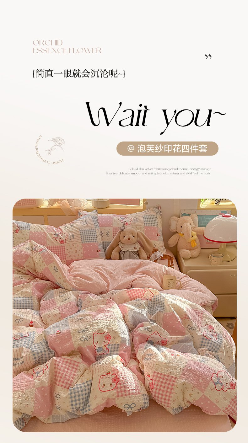 当前位置: 91家纺网 > 商品网购 > 床品套件 > 四件套 > 其它四件套 > 韩巢家纺 2026新款泡芙纱四件套 甜喵块块