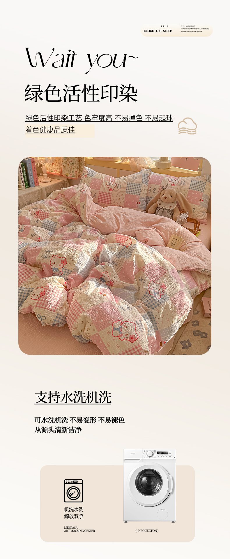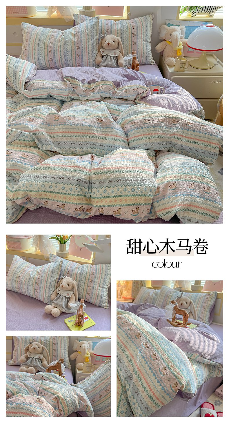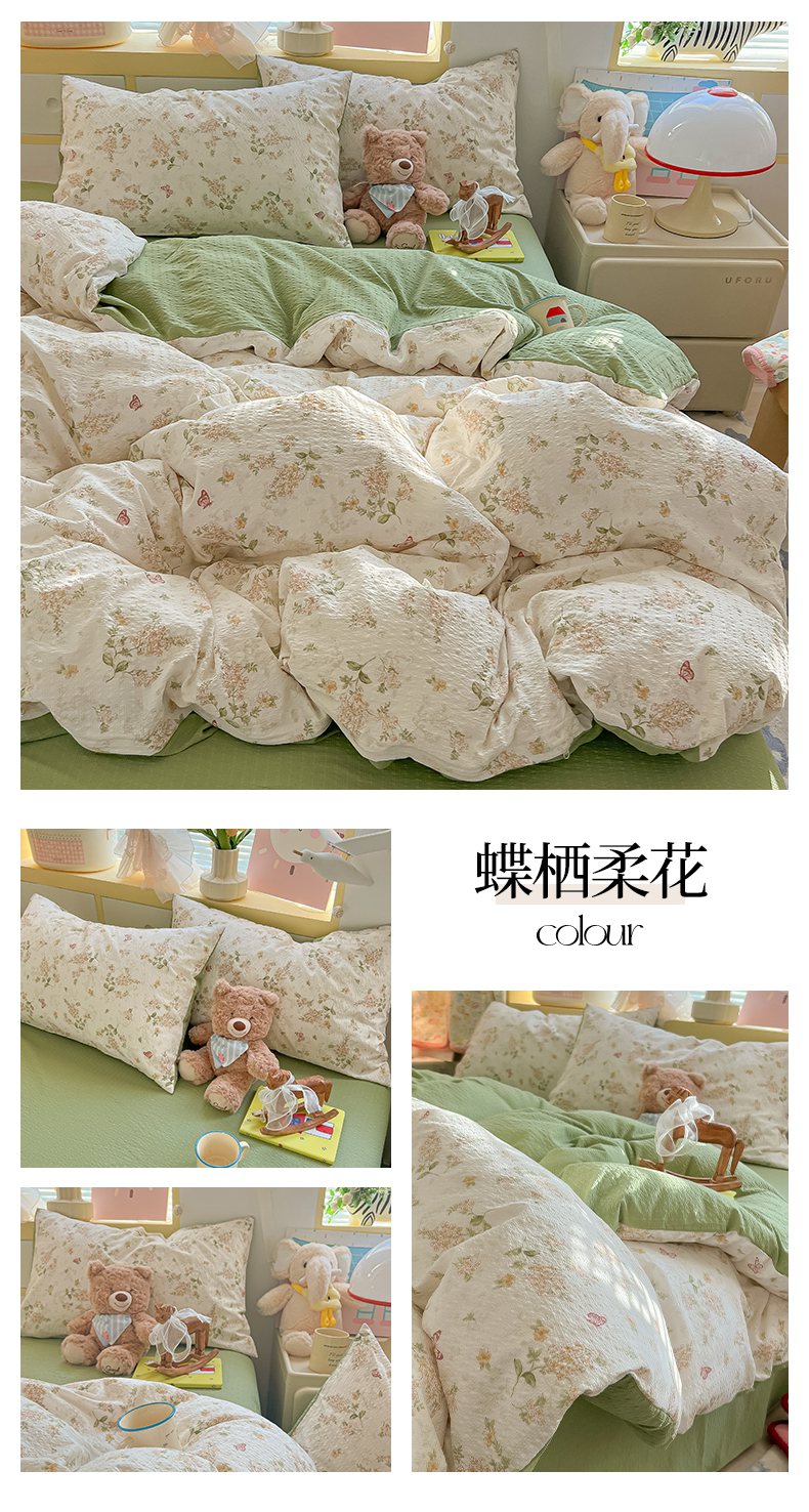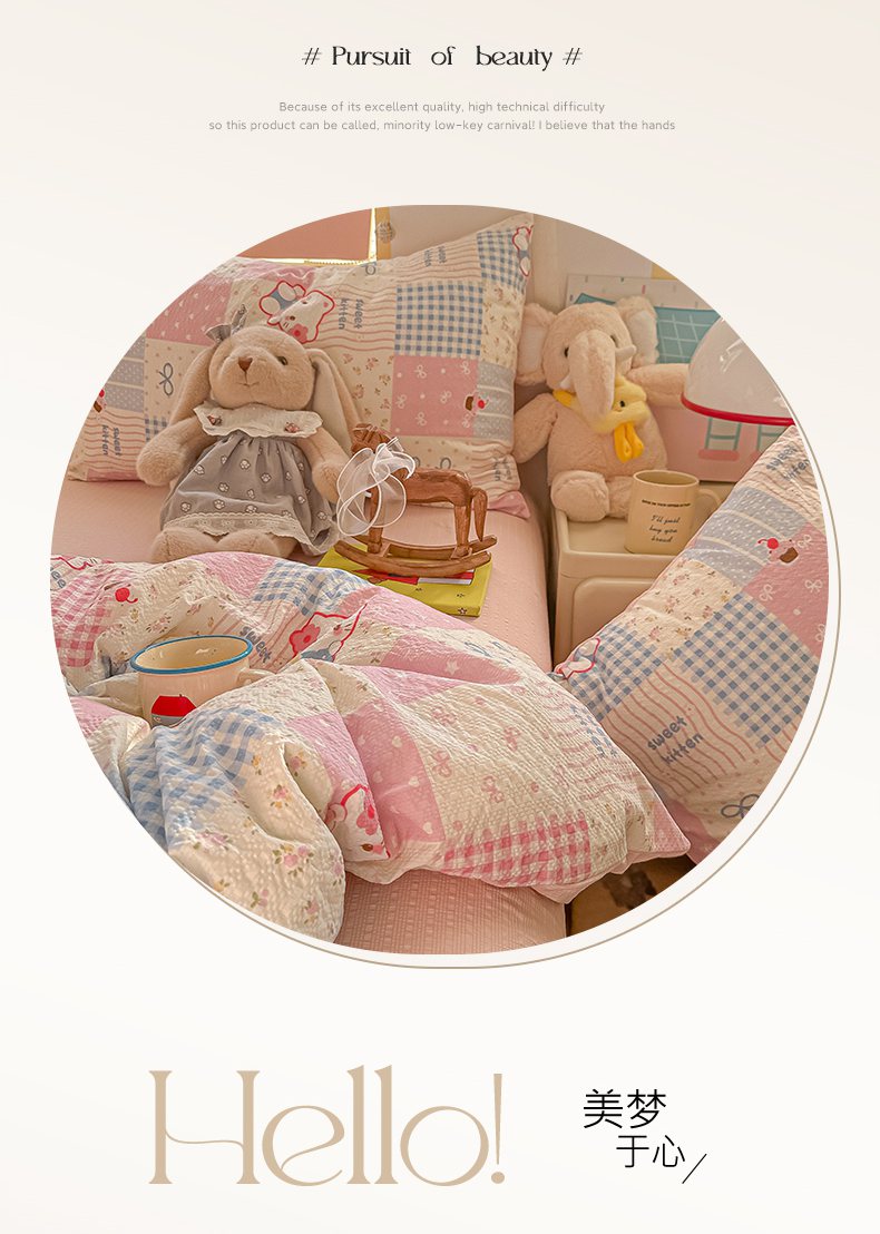 当前位置: 91家纺网 > 商品网购 > 床品套件 > 四件套 > 其它四件套 > 韩巢家纺 2026新款泡芙纱四件套 甜喵块块