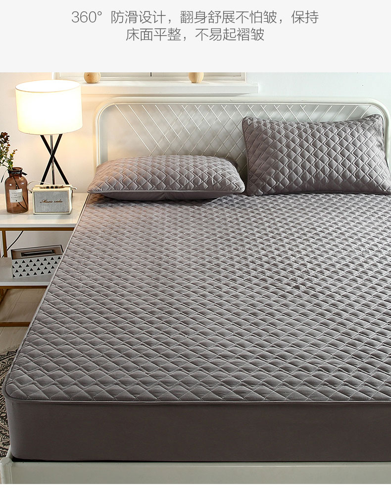 • 91家纺网 家纺一手货源 找家纺 伊赛家纺 2026新款夹棉加厚防螨格子床笠 浅灰