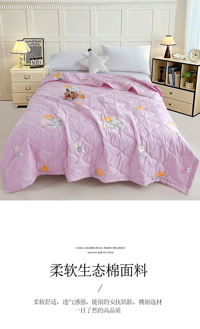 (总)好欣怡 2026新款水洗棉夏被,花涧-粉,南瓜日记,浅蓝信,柔粉花事,三叶草,桃乐,紫樱漫,紫芋星梦,樱花粉,湖蓝,绅士灰