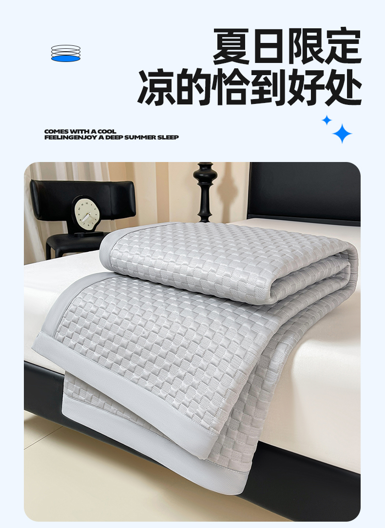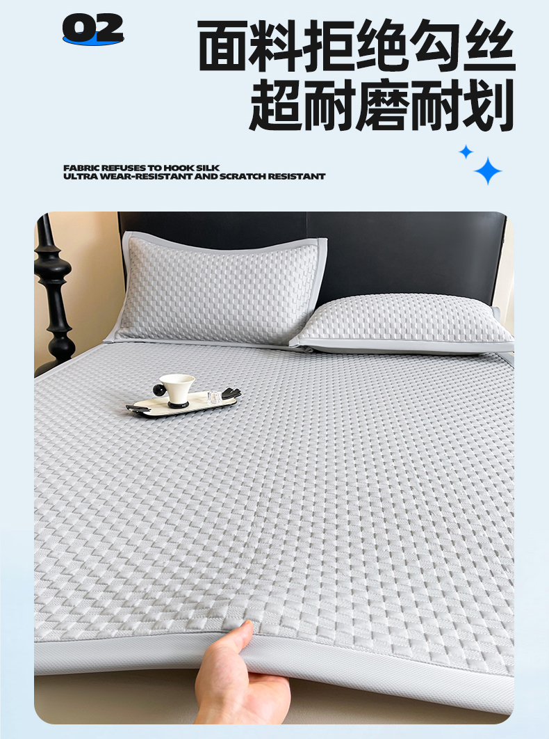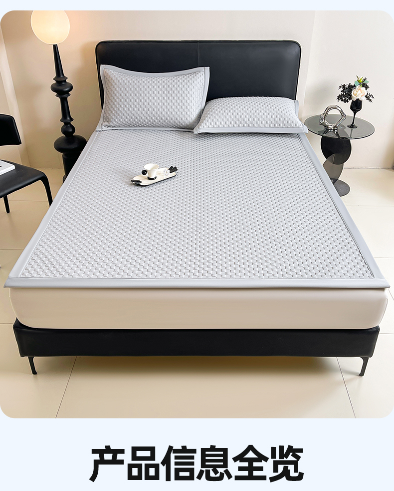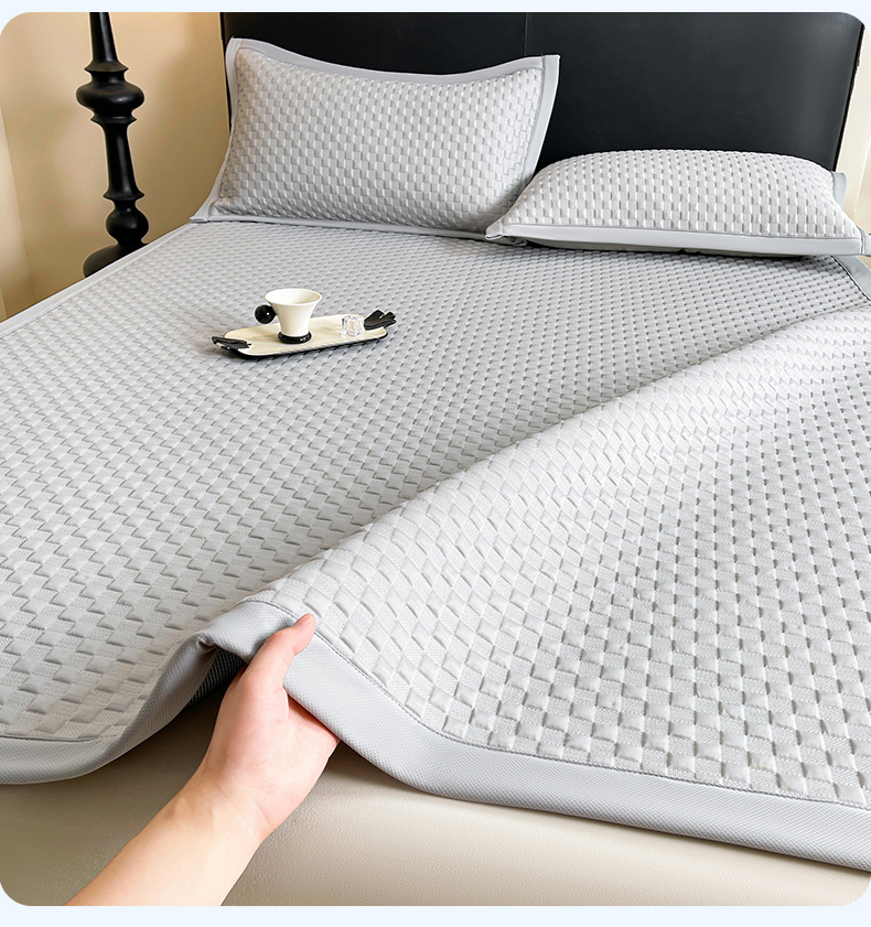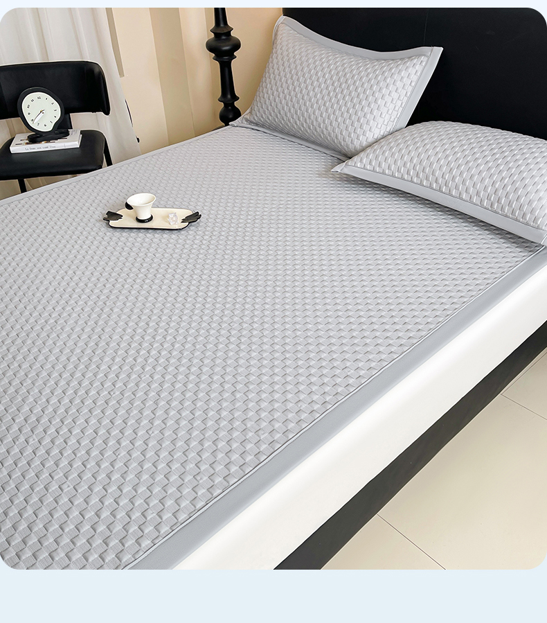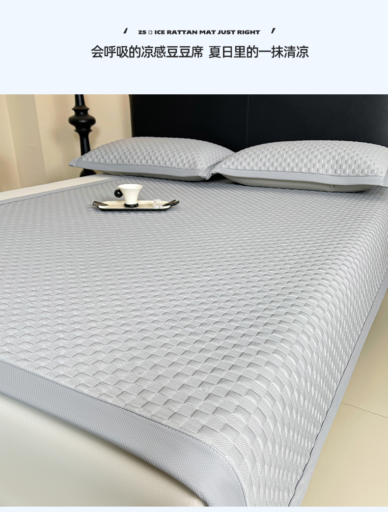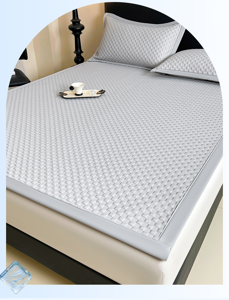商品名称:雯豆家纺 2026新款A类PE凉席三件套冰豆豆席A类纯色凉豆豆席子可水洗空调软席 方格款-威尼斯灰