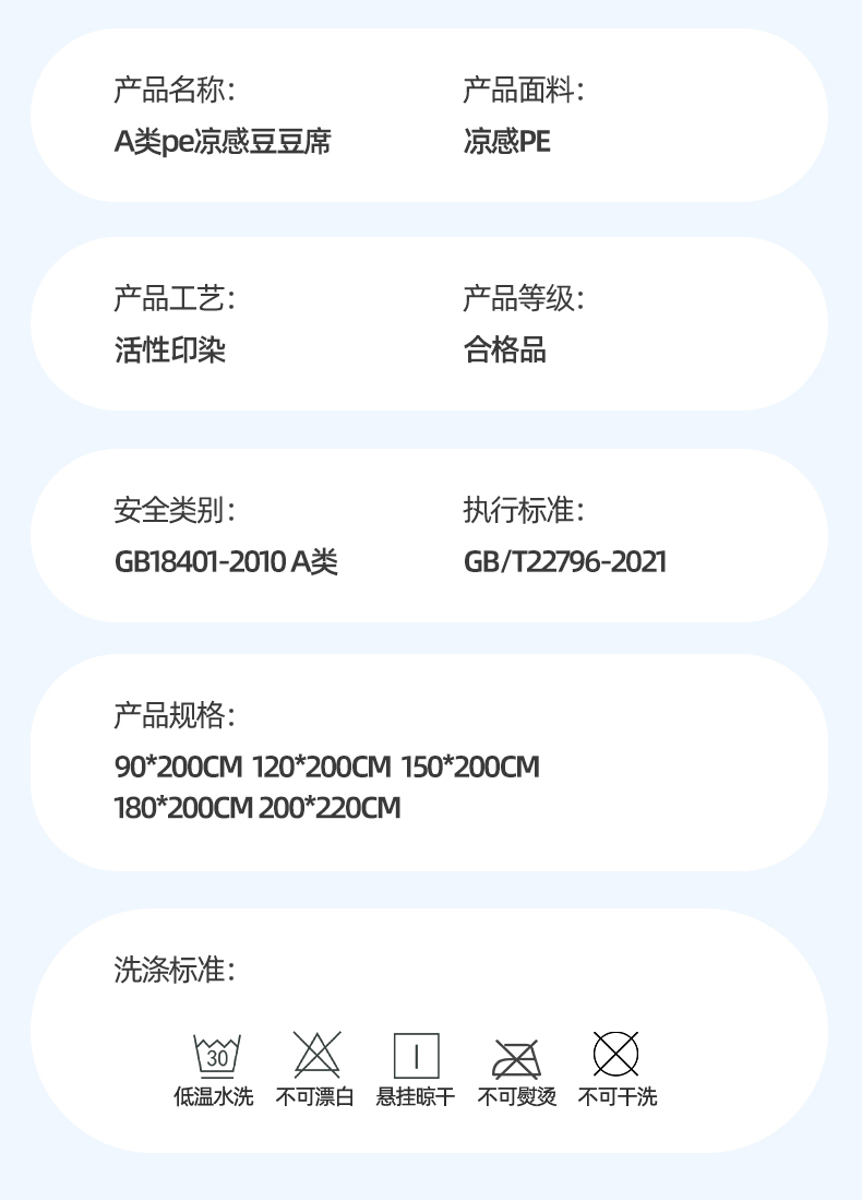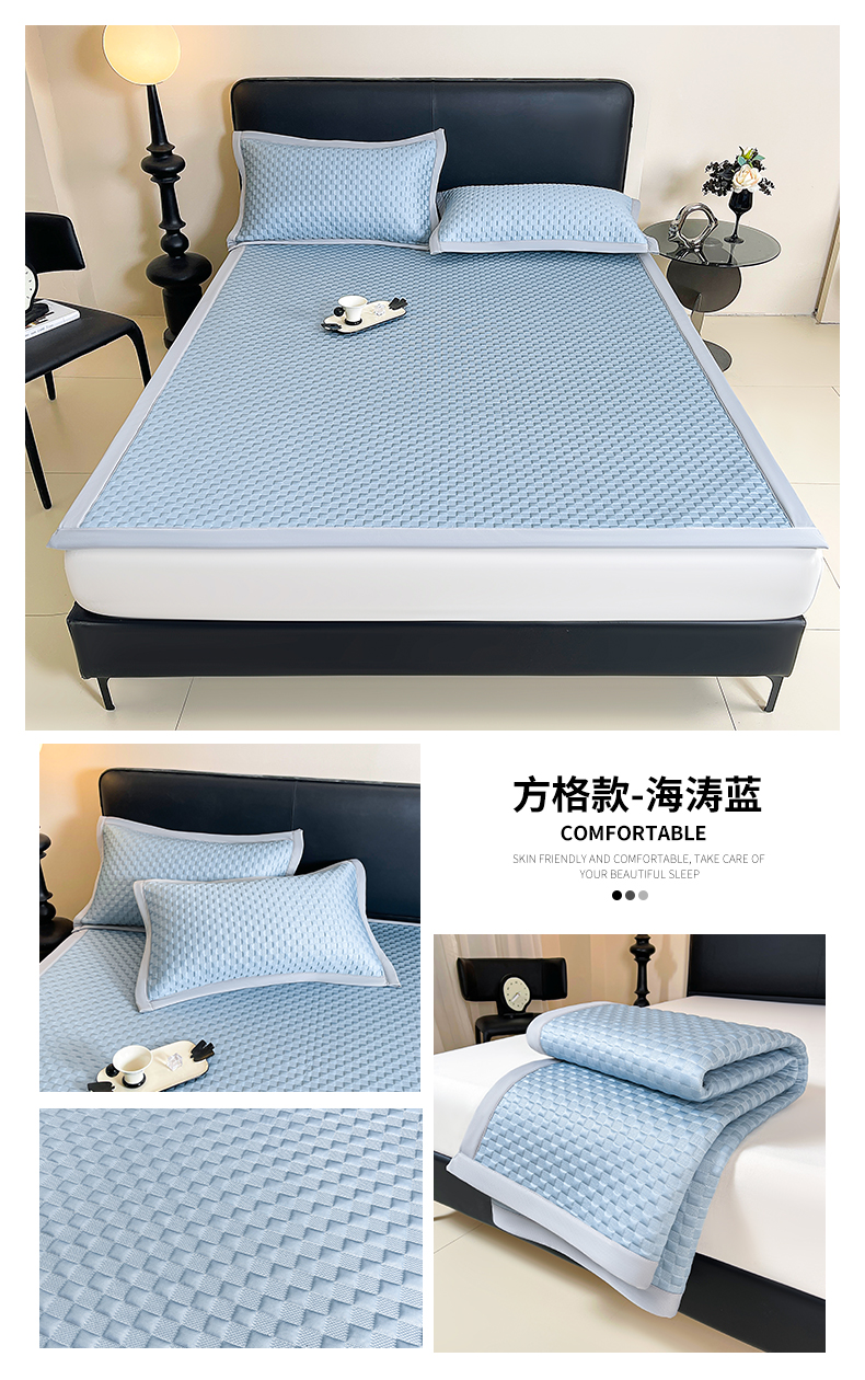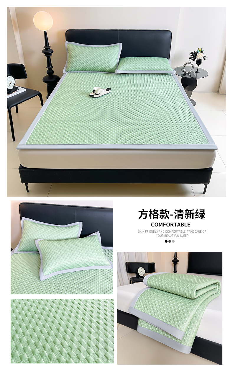 (总)雯豆家纺 2026新款A类PE凉席三件套冰豆豆席A类纯色凉豆豆席子可水洗空调软席,方格款-海涛蓝,方格款-玛莎粉,方格款-清新绿,方格款-威尼斯灰