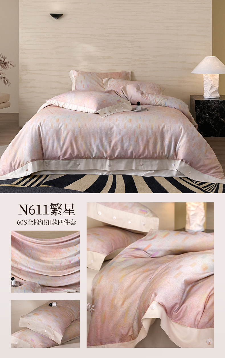 当前位置: 91家纺网 > 商品网购 > 床品套件 > 四件套 > 长绒棉四件套 > 梧桐树 2026新款60支长绒棉纯棉宽边纽扣系列四件套 N611繁星