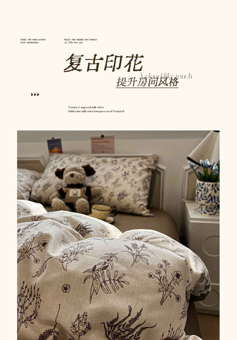 (总)忆生活 2025新款秋冬复古风全棉加厚磨毛四件套,简秋-咖,花汐,花颜-红,璃月-绿,漫枝-灰,漫枝-绿,骑士,芊墨,童年,玩伴,叶语,夜雨-咖