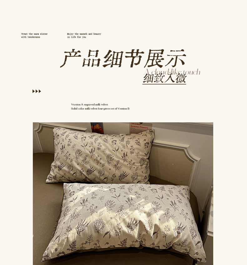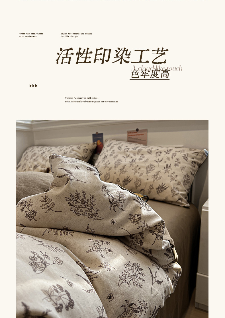 (总)忆生活家纺 2025秋冬新品软糯缇肤绒印花贝壳边四件套,卡拉-灰,南笙-咖,南笙-绿,浅夏-咖,素影-酒红,素影-紫