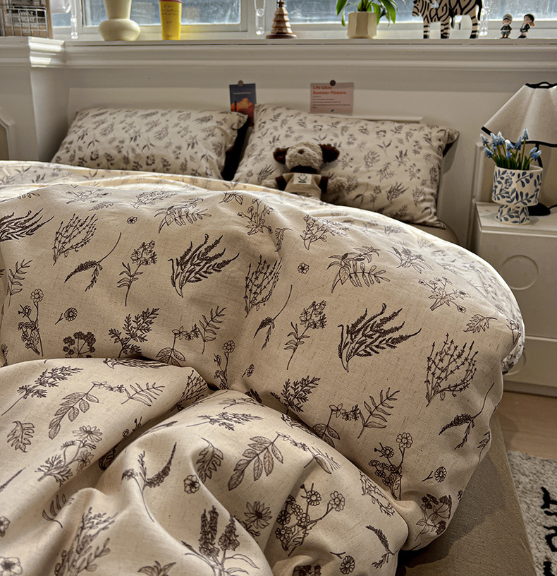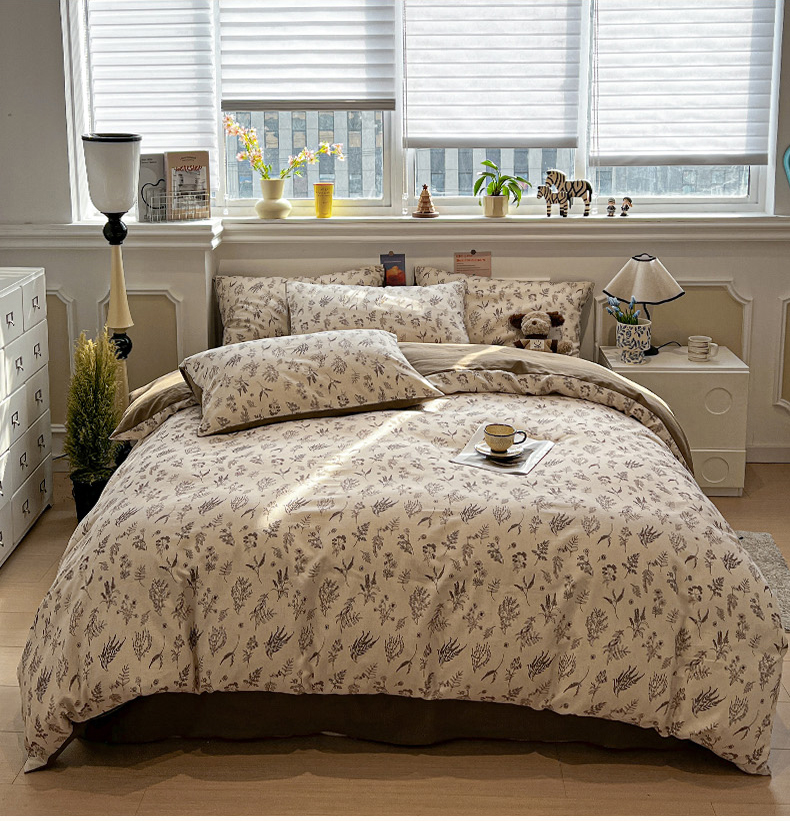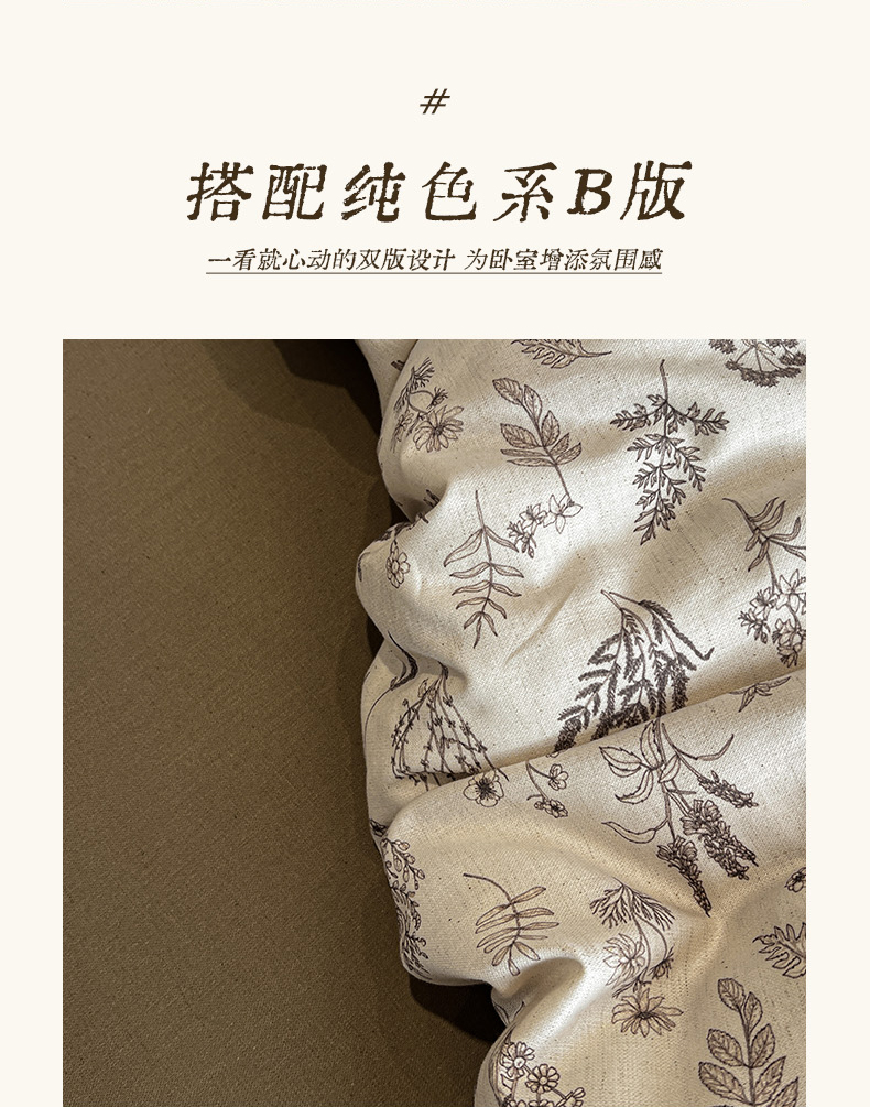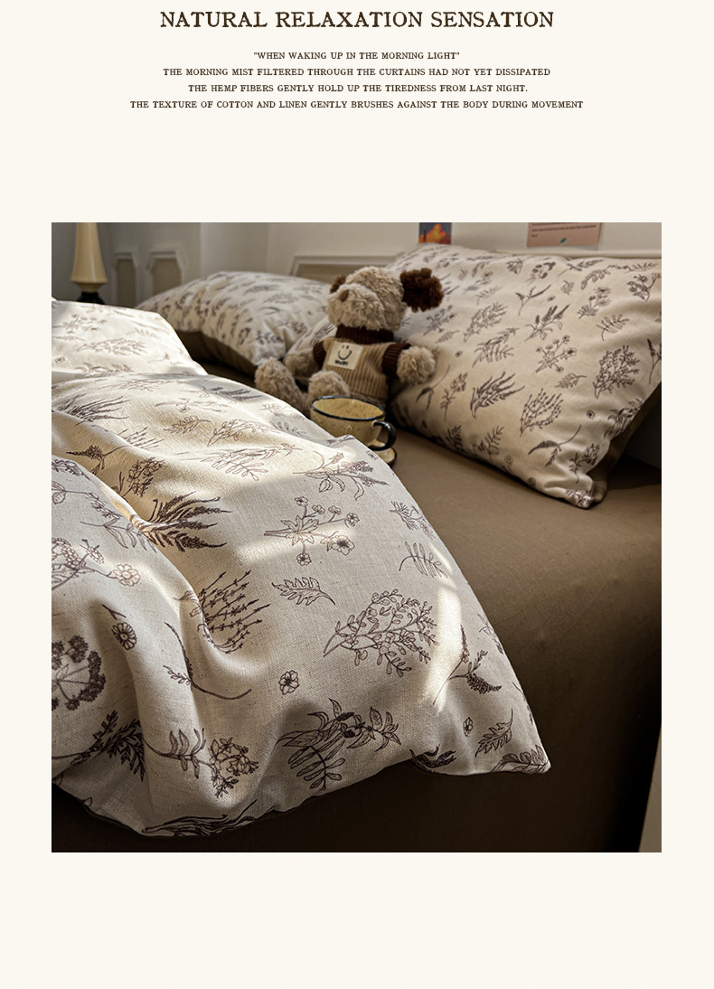 忆生活家纺 2026新款复古田园风棉麻四件套 知夏-咖
